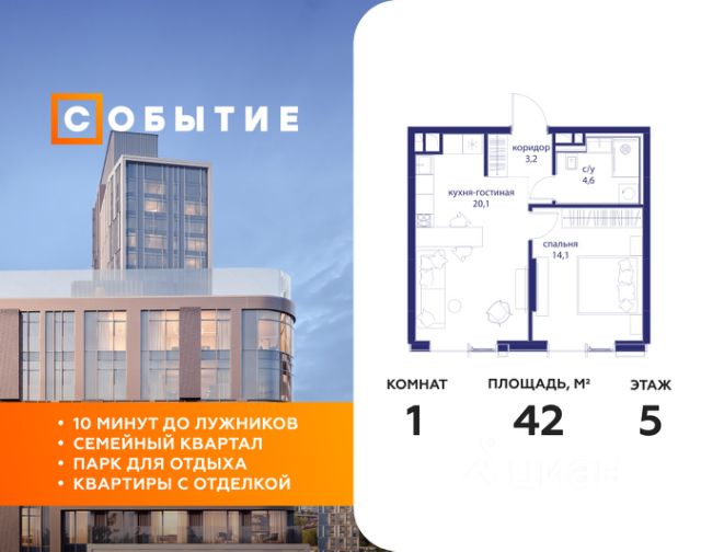 СОБЫТИЕ.6 — финальный дом парк-квартала СОБЫТИЕ на Мосфильмовской. Переезжайте в уже сформированный квартал с готовой инфраструктурой и парком! Премиальный жилой комплекс в престижном районе Москвы предлагает стильную архитектуру, продуманное благоустройство и великолепно разнообразие общественных пространств. Свой парк прямо возле дома!
