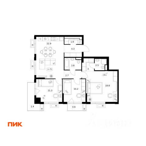 Трехкомнатная евроквартира для большой семьи. -Мастер-спальня с личной ванной и местом для системы хранения -Отдельная уютная детская комната -В квартире предусмотрено классическое остекление с эркерами -Второй санузел для удобства каждого члена семьи -Просторная кухня-гостиная в центре квартиры для семейных торжеств -Удобная ниша в коридоре для системы хранения Молодой район для жизни "Акценты" в классе бизнес-лайт — точка роста на севере Москвы. Он предлагает элегантные и строгие фасадные решения, авторский ландшафтный дизайн, а также функциональные и доступные по цене планировки. Проект находится в семи минутах пешком от станции метро "Лианозово" и одноименной МЦД-1. Добраться до МКАД можно будет за 10 минут на авто, а дорога до центра займет около 20 минут. Жилой комплекс, расположенный в районе Восточного Дегунино, предлагает развитую инфраструктуру для тех, кто ценит выбор. Он имеет удобный доступ не только к транспорту, но и к паркам, школам, садам, больницам и другим социальным объектам. В пешей доступности находятся 4 поликлиники, 5 школ, 6 детских садов, 3 бассейна и баскетбольная академия. Еще рядом есть несколько лесопарков: "Лианозово" с аттракционами и спортивными площадками для тенниса, волейбола и баскетбола, "Останкино" с конным клубом, прудом и пейнтбол-площадками. А "Северные Дубки" — это завораживающее пространство для прогулок под кронами вековых дубов, берез и лип. Кроме того, в районе не будет скучно и юным жителям. Можно оттачивать трюки в скейтпарке "Союз". Ловким и прыгучим советуем записаться в акробатический центр "Белка".