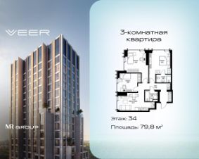 Прямая продажа от застройщика. Продаётся 3-комнатная квартира общей площадью 82.60 м² с предчистовой отделкой в ЖК VEER на 8-м этаже 59 этажного дома. Жилой комплекс бизнес-класса VEER от компании MR — это футуристичный мультиквартал, расположенный в престижной локации на западе Москвы. Благодаря переменной высоте башен — двух 22-этажных, 46-этажной и двух 59-этажных — возникает динамичность в силуэте комплекса, а его яркий образ вносит разноплановость в архитектурный пейзаж района. Расположение и транспортная доступность: • VEER удобно расположен в непосредственной близости от Кутузовского проспекта, обеспечивая быстрый доступ к центральным районам Москвы • Комплекс находится непосредственно напротив самого большого природного заказника в Москве - парка "Долина реки Сетунь", а за семь минут можно доехать до памятника садово-паркового искусства, Троекуровского леса. • Всего в 15 минутах - центр города, самая престижная бизнес-школа управления России "Сколково", дом творчества "Переделкино". • 18 минут пешком до м. "Давыдково" • Открытие новых станций метро в шаговой доступности в будущем Инфраструктура: Разнообразить свой день резиденты VEER смогут также проводя больше времени на свежем воздухе. Двор разделен на 4 зоны разных эмоций и действий, которые пересечены и соединены веерными прогулочными маршрутами: • Спортивная площадка устроена в глубине "Кленовой рощи" • В "Чайном домике" будет создан навес с утеплением для отдыха в любую погоду • Площадки для детей воплотятся в "Волшебный лес" с цветами, зеркалами и световым дизайном • "Центральная площадь" устроена у водного оазиса живописного пруда. Компания MR предлагает своим клиентам специальные условия приобретения квартир в рамках программ ипотечного кредитования от банков-партнеров.