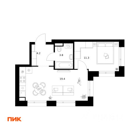 В районе Москворечье-Сабурово продается 1-комнатная квартира площадью 42.8 м². Она расположена на 4 этаже в 261 корпусе нового жилого квартала LIFE Варшавская. Площадь комнат: гостиная — 12,57 м² спальня — 12,41 м² кухня — 6,51 м² ванная — 4,85 м² В LIFE Варшавская мы создали идеальные условия для жизни молодых людей и семей с детьми, тинейджеров и спортсменов, домохозяек и бизнесменов. Жилой квартал LIFE Варшавская удачно расположен: 5 минут до станции "Варшавская" 10 минут до станции "Каширская" 18-25 минут до парка-усадьбы "Коломенское", Битцевского леса и музея-заповедника "Царицыно" Богатая инфраструктура — это визитная карточка проекта. На территории работают детский сад на 160 мест и школа на 900 мест с IT-полигоном и мультифункциональным спортивным стадионом. В квартале разместились пешеходный бульвар, игровой плейхаб "Змейка", спортивный кластер с полями для футбола и волейбола, площадка для выгула животных. На первых этажах жилых домов открыты магазины, кафе и рестораны, салоны красоты, арт-галереи, сервисы бытовых услуг, медицинские центры. Концепция жилого квартала создана ведущими архитектурными бюро. Структуры малоэтажных кварталов дополняются высотными башнями-доминантами. Такой тип застройки позволил сформировать освещенную приватную территорию.