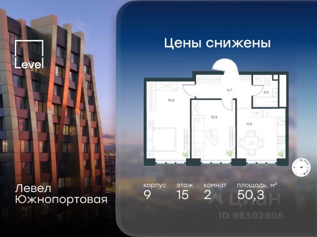 Цена указана с учётом скидки при 100%-й оплате, несубсидированной ипотеке, рассрочке (кроме программы "Рассрочка 0%"). В северной части района Печатники продается 2-комнатная квартира площадью 52.00 кв.м с отделкой white box. Квартира расположена на 12 этаже 49-этажного корпуса 9 в жилом комплексе комфорт-класса Левел Южнопортовая (компания Level Group/Левел групп). Отличная транспортная доступность: - 10 мин. пешком до станции метро "Кожуховская"; - 20 мин. пешком до станции МЦК "Дубровка"; - 3 мин. на авто до ТТК; - 13 мин. на авто до Садового кольца; - 15 мин. на авто до Бульварного кольца. Продуманный архитектурный проект: - авторская архитектура от бюро СПИЧ; - уникальные виды на реку, парки и достопримечательности города; - высота потолков в квартирах до 6 м; - окна высотой до 1,87 м с высоким коэффициентом сопротивления теплоотдаче. Расположение: Жилой комплекс Левел Южнопортовая строится в северной части района Печатники - самой приближенной к центру. Здесь будет сформирован новый район "Южный порт", где построят крупный жилой и общественно-деловой центр, аналогичный Москва-Сити. В течение 10-12 лет в этом месте появятся не только жилые дома, но и развитая инфраструктура для жизни и работы. А еще совсем рядом находится набережная Москвы-реки, где планируется построить причалы для речных трамвайчиков и канатную дорогу. Уже сейчас вокруг жилого комплекса работают десятки магазинов и торговых центров, рядом расположено 6 парков, среди которых музей-заповедник "Коломенское". В 10 минутах пешком - 2 муниципальных и 2 частных детских сада, 7 общеобразовательных школ. Внутренняя инфраструктура: Для отдыха жителей в каждом корпусе предусмотрено лобби, оснащенное местами для отдыха, гостевыми санузлами и лапомойками, а в отдельных корпусах - камином. За счёт больших окон и высоких потолков пространства будут наполнены воздухом и светом. На первых этажах жилого комплекса откроются магазины, салоны красоты, фитнес-центр. Для детей строятся собственные детский сад и школа. Благоустройство: Внутренний двор комплекса разработан совместно с бюро GAFA. Основная идея - создать аналог Центрального парка в Нью-Йорке, гармонично сочетая высотные здания и большое изолированное парковое пространство. Вся площадь двора-парка будет огорожена и составит более 2 га, из которых 45% - озеленение. Одним из самых важных ландшафтных элементов здесь станет небольшая речка, наполняющаяся во время дождя. Вокруг неё появится сеть из островов, внутри которых расположатся тематические зоны спорта и отдыха. Технологии и инженерия: - автоматическая передача в управляющую компанию показаний квартирных счётчиков; - телефонная связь, телевидение и интернет на базе оптической мультисервисной сети; - гостевой вайфай в лобби и на территории двора; - единый ключ доступа для входа на территорию комплекса.