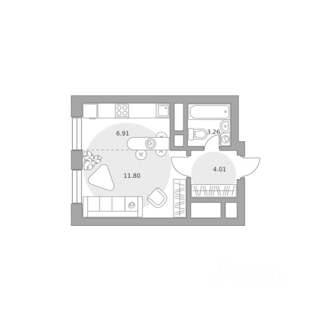 Продаётся студия 155, площадью 25,98 м², на 2 этаже в ЖК "Ильинойс" корпус 3. Стоимость — от 7731397 руб. Квартира с отделкой, планировка односторонняя, окна на улицу.