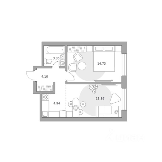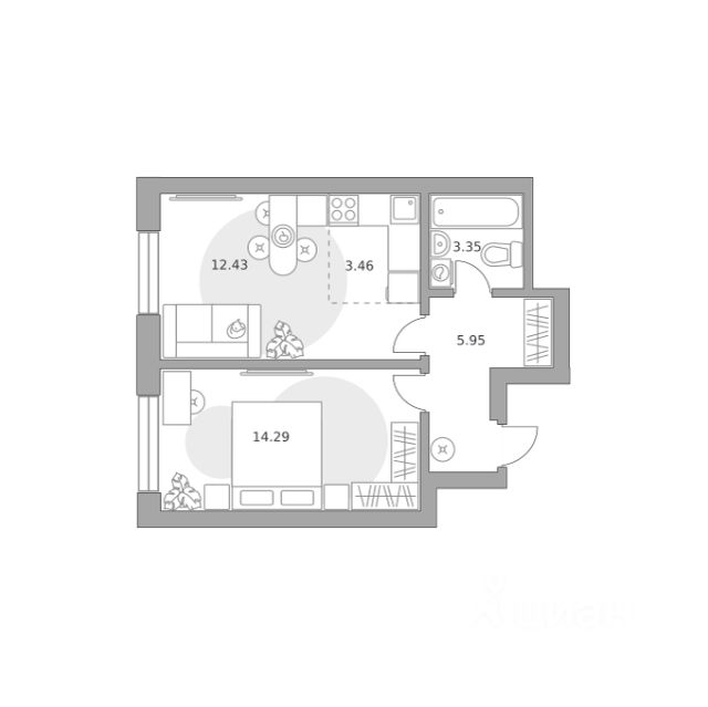 Продаётся студия 206, площадью 24,33 м², на 5 этаже в ЖК "Ильинойс" корпус 3. Стоимость — от 7354037 руб. Квартира с отделкой, планировка односторонняя, окна во двор.