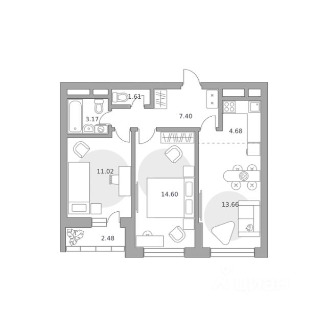 Продаётся 2-комнатная квартира 166, площадью 45,46 м², на 2 этаже в ЖК "Ильинойс" корпус 3. Стоимость — от 12657709 руб. Квартира с отделкой, планировка односторонняя, окна на улицу.