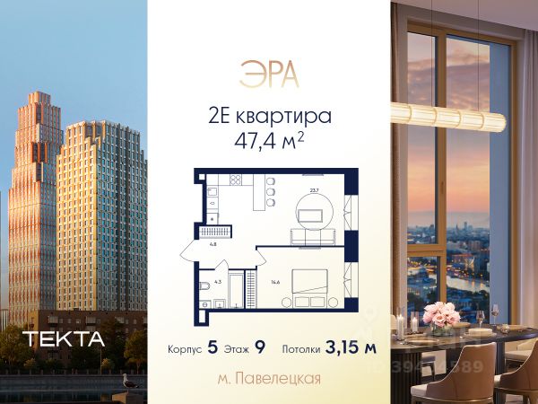 Рассрочка 0% с платежом от 250 000 ₽ в месяц. 3-комн. квартира в ЖК "ЭРА" на 6 этаже в 52 этажном здании Корпус 5. Общая площадь: 55.5 кв.м., жилая: 33.60 кв.м. Высота потолков 3.15 м. Современный премиум-квартал ЭРА на Дербеневской набережной, формирующий новый архитектурный облик Даниловского района Москвы. Жилой комплекс из шести высотных корпусов выполнен в актуальной интерпретации стиля ар-деко, где ритмичные линии фасадов, натуральный мрамор и изысканные орнаменты создают гармоничный и запоминающийся образ. ЭРА предлагает жителям единый просторный закрытый двор. Инфраструктура двора включает разнообразные детские игровые площадки, зоны для занятий спортом, а также места для спокойного отдыха — в всесезонном зеленом лабиринте или яблоневом саду. Для озеленения территории планируется высадка около 3000 деревьев и кустарников. Их сохранность обеспечат система автополива, а для комфорта в холодное время года малые архитектурные формы будут оборудованы подогревом. Вторая очередь комплекса включает три корпуса высотой от 37 до 52 этажей. Впечатляющие входные группы, разработанные бюро ХААСТ, встречают жителей потолками 8,8 метров. В лобби создана атмосфера уюта благодаря индивидуальной ароматизации и музыкальному сопровождению. Здесь же обустроена кофейная зона с профессиональной кофемашиной, а для дополнительного удобства установлен постамат. Высокий стандарт чистоты в любое время года обеспечивают роботы-уборщики, что подчеркивает технологичность комплекса ЭРА. Для комфортного подъезда такси перед каждым корпусом предусмотрены специальные зоны подачи машины и высадки пассажиров. Подземный паркинг на 285 мест. Ключевое преимущество — превосходная локация в развивающемся районе с готовой инфраструктурой. Всего в 5 минутах от Садового кольца, в шаговой доступности от Замоскворечья и набережной Москвы-реки, вы сможете наслаждаться динамикой городской жизни. При этом в самом комплексе на первых этажах будут работать кафе, магазины, салоны красоты и детские образовательные пространства. ЭРА — это гармоничный симбиоз статусного адреса, безупречного сервиса и приватности для жизни вашей мечты.