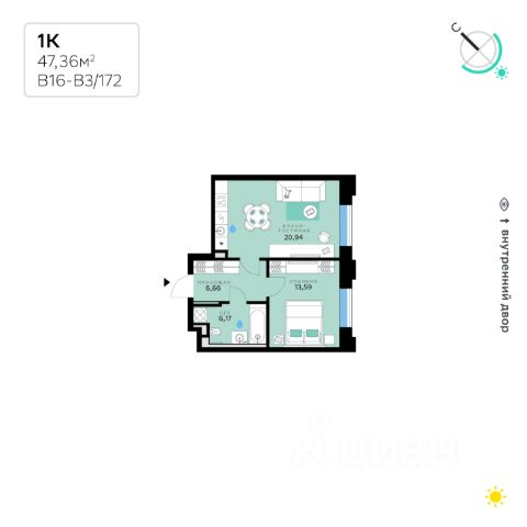 В продаже — однокомнатная квартира с чистовой отделкой, общей площадью 46,2 кв. м. Квартира расположена на четвертом этаже десятиэтажного корпуса Балансд в квартале В16 нового района СберСити, который строит Сбер. Архитектуру квартала В16 создало итальянское бюро ARCHEA middle east: каждый дом узнаваем, но вместе они складываются в спокойный, цельный ансамбль. В облицовке сочетаются тёплые оттенки кирпича и металла, за счёт игры фактур фасады выглядят живыми и меняются в разное время дня. Строгая геометрия поддерживает ритм города, а мягкая природная палитра помогает чувствовать себя дома, а не в деловом квартале. Дом возводится по технологии монолитного строительства. Все квартиры передаются с чистовой отделкой. Отделка предлагается на выбор в трёх стилях — Новая классика, Скандинавский и Средиземноморский — в нескольких цветовых решениях. В квартирах предустановлена система "умный дом", связывающая квартиру, дом и прилегающую территорию. Жильцы могут регулировать климат и освещение голосом или со смартфона, предусмотрена защита от протечек. Высота потолков — от 2,9 м. Квартал состоит из девяти домов средней этажности — от 7 до 10 этажей. Корпуса формируют большой внутренний двор площадью два гектара. Во дворе предусмотрены зоны для разных сценариев: просторные площадки для детей, пространства для активного досуга и спорта, тихие места для отдыха и спокойного времени, а также удобные рабочие места под открытым небом. Здесь легко найти своё — для жизни, здоровья и занятий тем, что действительно нравится. В доме предусмотрены: уютное лобби с зоной ожидания, лапомойка, санузел, помещение для хранения колясок и велосипедов, подземный паркинг. СберСити — это новый жилой и деловой район на западе Москвы, в одном из самых экологически чистых и престижных мест столицы. Это первая в России и крупнейшая в мире инновационная городская среда, созданная по международным стандартам зелёного проектирования. Здесь внедряются решения в области энергоснабжения, вакуумного мусороудаления, тестирования зелёных технологий, а в дальнейшем — системы искусственного интеллекта для управления домами и городской инфраструктурой. Строительство проекта началось в 2021 году, заселение первых корпусов — с лета 2024-го. Общая площадь территории — 461 га, из них более 2,5 млн кв. м жилья и около 833 тыс. кв. м офисных пространств. Будет построено 7 школ, 13 детских садов и 2 поликлиники. В СберСити будут жить 65 тыс. человек и работать 70 тыс. Развитием территории занимается АО "Рублёво-Архангельское", входящее в группу Сбер. СберСити — место, где хочется жить, работать и растить детей. Переезжайте в СберСити!