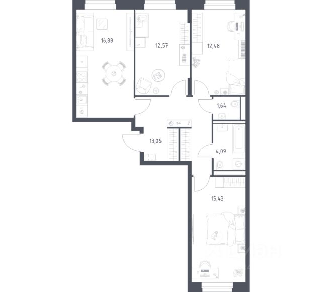 В продаже — двухкомнатная квартира с чистовой отделкой, общей площадью 84,76 кв. м. Квартира расположена на втором этаже восьмиэтажного корпуса Оптимум в квартале В16 нового района СберСити, который строит Сбер. Архитектуру квартала В16 создало итальянское бюро ARCHEA middle east: каждый дом узнаваем, но вместе они складываются в спокойный, цельный ансамбль. В облицовке сочетаются тёплые оттенки кирпича и металла, за счёт игры фактур фасады выглядят живыми и меняются в разное время дня. Строгая геометрия поддерживает ритм города, а мягкая природная палитра помогает чувствовать себя дома, а не в деловом квартале. Дом возводится по технологии монолитного строительства. Все квартиры передаются с чистовой отделкой. Отделка предлагается на выбор в трёх стилях — Новая классика, Скандинавский и Средиземноморский — в нескольких цветовых решениях. В квартирах предустановлена система "умный дом", объединяющая управление квартирой, домом и прилегающей территорией. Можно регулировать климат и освещение голосом или через смартфон. Квартал состоит из девяти домов средней этажности — от 7 до 10 этажей. Корпуса формируют большой внутренний двор площадью два гектара. Во дворе предусмотрены зоны для разных сценариев: просторные площадки для детей, пространства для активного досуга и спорта, тихие места для отдыха и спокойного времени, а также удобные рабочие места под открытым небом. Здесь легко найти своё — для жизни, здоровья и занятий тем, что действительно нравится. В доме предусмотрены: уютное лобби с зоной ожидания, зона коворкинга в лобби, детская игровая комната на первом этаже, общественная терраса для досуга резидентов с диванной группой и зоной для йоги с настилом, лапомойка, санузел, помещение для хранения колясок и велосипедов, подземный паркинг. СберСити — это новый жилой и деловой район на западе Москвы, в одном из самых экологически чистых и престижных мест столицы. Это первая в России и крупнейшая в мире инновационная городская среда, созданная по международным стандартам зелёного проектирования. Здесь внедряются решения в области энергоснабжения, вакуумного мусороудаления, тестирования зелёных технологий, а в дальнейшем — системы искусственного интеллекта для управления домами и городской инфраструктурой. Строительство проекта началось в 2021 году, заселение первых корпусов — с лета 2024-го. Общая площадь территории — 461 га, из них более 2,5 млн кв. м жилья и около 833 тыс. кв. м офисных пространств. Будет построено 7 школ, 13 детских садов и 2 поликлиники. В СберСити будут жить 65 тыс. человек и работать 70 тыс. Развитием территории занимается АО "Рублёво-Архангельское", входящее в группу Сбер. СберСити — место, где хочется жить, работать и растить детей. Переезжайте в СберСити!