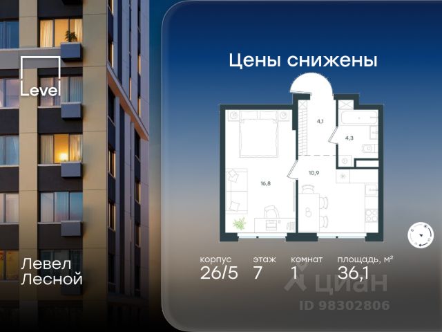 Цена указана с учётом скидки при 100%-й оплате, несубсидированной ипотеке, рассрочке (кроме программы "Рассрочка 0%"). В районе, утопающем в густой зелени лесов, многочисленных парков и скверов, продаётся 1-комнатная квартира площадью 37.60 кв.м с предчистовой отделкой. Квартира расположена на 6 этаже в жилом комплексе комфорт-класса Левел Лесной (компания Level Group/Левел групп). Отличная транспортная доступность: - 25 мин. пешком до станции метро "Пятницкое шоссе"; - 28 мин. на автобусе до станции метро и МЦД-2 "Волоколамская"; - 11 мин. на авто до МКАД; - 25 мин. на авто до ТТК. Продуманный архитектурный проект: - Концепция проекта Левел Лесной от бюро СПИЧ; - Высотность комплекса до 15 этажей с уникальными видами на лесные массивы и город; - Высота потолков до 3 м; - Современные окна высотой до 1,6 м, в части квартир предусмотрены окна в пол. Высота подоконников 0,6 м; Расположение: Жилой комплекс Левел Лесной строится в зелёной зоне ближайшего Подмосковья, г.о. Красногорск в посёлке Отрадное. Шаговая и автомобильная доступность до метро и больших транспортных артерий города. За 25 минут вы дойдёте до станции метро "Пятницкое шоссе", а за 20 минут на машине сможете доехать до станции метро "Тушинская". Район окружен роскошной зеленью лесов и парковых зон, занимающих территорию свыше 1 000 гектаров. Помимо благоприятной экологии, здесь множество возможностей для активного отдыха и поддержания физической формы. Облагороженная территории с полностью развитой инфраструктурой. На территории проекта находится детский сад и школа "Светлые Горы", которая входит в список лучших частных школ от Forbes Education (по данным на 2023г.). Кроме того, в пешей доступности расположено ещё 8 детских садов, а также запланировано открытие современной муниципальной школы. В непосредственной близости находятся сетевые супермаркеты и локальные магазины, аптеки, клиники, почта, библиотека, салоны красоты, рестораны, спортивные и творческие секции, развивающие детские центры. В 12 минутах пешком расположен торговый парк "Отрада" с продуктовым и строительным гипермаркетами, магазинами, кинотеатром и развлечениями для детей. Внутренняя инфраструктура: Мы знаем, как важно, чтобы магазины и сервисы были всегда рядом. В сданных корпусах жилого комплекса Левел Лесной уже расположена полностью готовая развитая инфраструктура. На первых этажах корпуса 27 предусмотрено ещё 14 коммерческих помещений. Благоустройство: Продуманное пространство и аура приватного европейского городка рождают чувство лёгкости и расслабления у каждого, кто попадает на территорию проекта. Концепцию общественных площадок разработали в партнёрстве два архитектурных бюро: "Хайлайт Архитектура" (Highlight Architecture) и "Скейп" (Scape). В безопасных дворах без машин каждый обязательно найдёт себе место для вдохновения, отдыха и спорта. Квартира в новостройке с отделкой рядом с метро Митино.