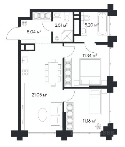 Продаётся 2-комнатная квартира 484, площадью 44,12 м², на 23 этаже в ЖК "Beluck Коломенское" корпус 1. Стоимость — от 21372648 руб. Квартира white box, планировка односторонняя, окна на улицу.