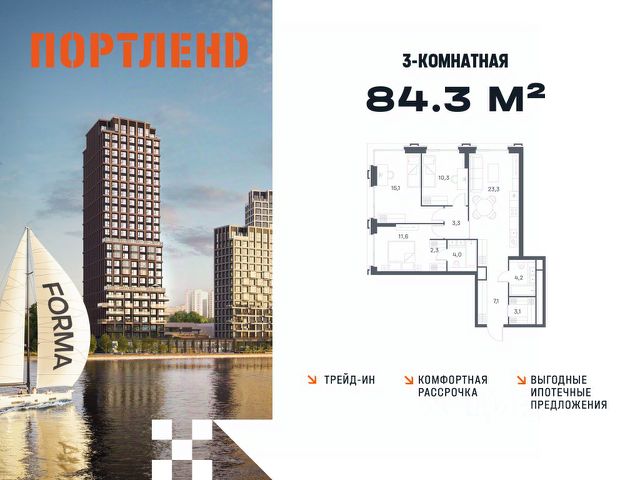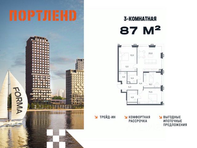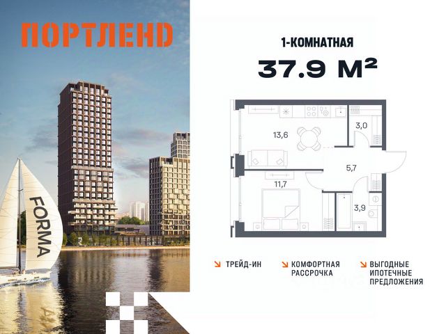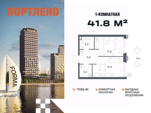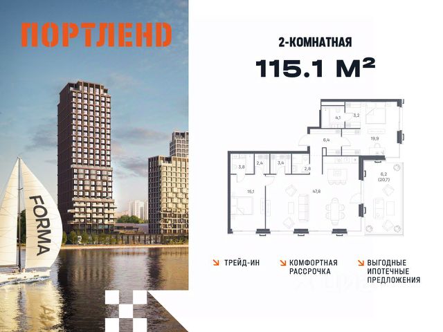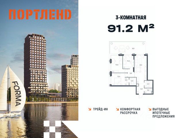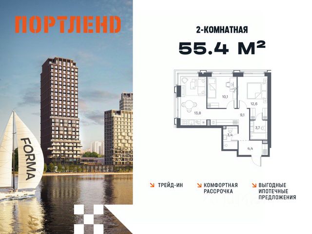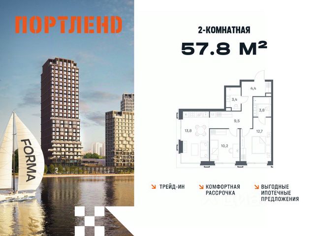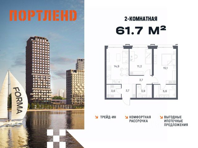 Цены указаны с условием 100% оплаты и стандартной ипотеки. Продаётся 2-к. квартира, 8 этаж в жилом комплексе бизнес-класса ПОРТЛЕНД от девелопера FORMA. ЖК расположен на берегу Москвы-реки в северной части района Печатники в акватории Южного речного порта. Основные преимущества проекта: • Самая протяженная береговая линия реки в Москве 13 км. • Вид на реку в сторону запада панорамные окна на самое широкое водное пространство Москва-реки (900 м) и на закат. • 95% квартир с видом на воду. • К ПОРТЛЕНД не примыкает крупных автомагистралей - отсутствие фонового шума дорог. • В перспективе ближайших 11 лет на территории района запланировано грандиозное преобразование и комплексное развитие. • Собственная набережная длиной 412 м., которая после завершения строительства сомкнется с эко-парком Печатники. • Прямой выход к воде и отсутствие проезжей части между ПОРТЛЕНД и береговой линией. • Инфраструктурное разнообразие: супермаркеты, крупные торговые центры, рестораны, кафе, фитнес-клубы, бьюти-салоны, компании сферы услуг и многое другое. • Собственная школа на 300 мест и детский сад на 275 мест. • Паркинг на 650 м/м • Транспортная вседоступность: метро, авто, велосипед, речной трамвай, канатная дорога • 15 мин. пешком до м. Печатники, 15 мин. на авто до ТТК, 20 минут на авто до Садового кольца