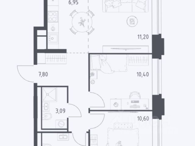 О квартире Продаётся 2-комнатная квартира общей площадью 57.87 кв.м. с отделкой white box. Квартира расположена на 2 этаже корпуса 4.1 в жилом комплексе бизнес-класса "Среда на Кутузовском" в пешей доступности от метро "Кунцевская". О жилом комплексе Комплекс предназначен для людей, которые ставят в приоритет свой комфорт, умеют прислушиваться к себе и понимают, что нужно для внутренней гармонии. Это проект для тех, кто ценит свое время и использует его правильно. Для тех, кто умеет радоваться тому, что есть. "Среда на Кутузовском" — личное место силы и гармонии в двух шагах от центра города. Инфраструктура Жилой комплекс строится в престижном и зеленом Кунцево. Здесь расположены различные торговые центры, престижные учебные заведения (МГУ, РЭУ им. Плеханова, Финансовый университет при Правительстве РФ, РУДН) медицинские клиники. Представлены широкие возможности для поклонников разных видов спорта: от бега в ближайших парках и велозаездов до гребли, баскетбола, футбола, хоккея, фигурного катания и катания на лыжах. На каждый день подойдет World Class с открытым бассейном — он находится всего в 1 минуте от дома. Выбор мест для прогулок также разнообразен: Суворовский парк, лесной массив Крылатских холмов, Москворецкий парк и природный заказник "Долина реки Сетунь". 10 мин пешком: -м. Кунцевская -вся необходимая инфраструктура До 15 мин на авто: -Северо-Западная хорда -Кутузовский проспект -Рублевское шоссе -МКАД -Можайское шоссе Особенности Проект сочетает в себе ритмичность и динамичность, благодаря своей архитектуре, при он этом окружен зеленью и парками. "Среда на Кутузовском" погружает в активный и разнообразный образ жизни, дает вариативные возможности досуга и вдохновляет на новые свершения. —Зоны отдыха у воды —Принцип многослойности в архитектуре —Зона барбекю —Пентхаусы —Умный паркинг —Гайдбук по управлению умным домом —Окна в пол на всех этажах
