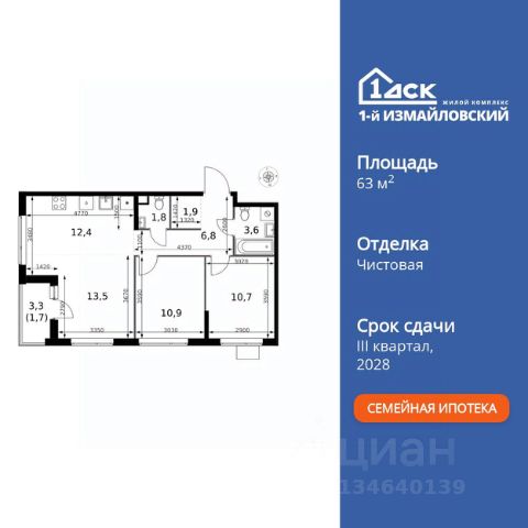 Прямая продажа от застройщика! Жилой Комплекс Комфорт класса. Продаётся 2-к квартира номер 20 общей площадью 53.3 кв.м. на 3-м этаже 25 этажного здания. Предчистовая отделка. Цена с учётом скидки. Особенности квартиры: - Организуем показ в удобное для вас время! - Угловая планировка - больше пространства для ваших идей. - Увеличенное количество окон - дополнительное освещение и свежий воздух. - Гостевой санузел - комфорт и удобство для ваших гостей. - Гибкая планировка - создайте пространство по своему вкусу. - Место для игры/занятия спортом - идеальное пространство для активных детей. - Можно оборудовать рабочее место - комфорт для работы и учёбы. - Линейная кухня - функциональность и практичность в одном решении. - Ниша под шкаф - компактное и удобное место для вещей. - Лоджия - уютное место для отдыха и тишины. Квартира с предчистовой отделкой. Вам не придется заниматься черновыми и трудоёмкими работы, а чистовую отделку и дизайн - сделайте на свой вкус. Информация о комплексе: ЖК "1-й Измайловский" в восточной части Москвы: идеальное место для жизни в окружении 14 000 гектаров леса. Наслаждайтесь лыжными прогулками зимой и пробежками летом в сиреневом саду и лесопарках. Комплекс отгорожен от шоссе застройкой первой линии и садами здоровья. Из окон открываются виды на парк "Лосиный остров" и зеленые дворы. Близость к природе и спортивным объектам создаёт атмосферу здорового образа жизни. Транспортная доступность: Не более 2,5 км до станций метро "Щёлковская" и "Черкизовская" и МЦК "Локомотив". Щёлковское шоссе соединяет квартал с Северо-восточной хордой и МКАД, Центральным автовокзалом и Восточным железнодорожным вокзалом. Две автобусные остановки в паре минут ходьбы и 11 маршрутов общественного транспорта. На автомобиле 3 минуты до СВХ 12 минут до ТТК 15 минут до Садового кольца Внутренняя инфраструктура: ЖК расположен в историческом районе Москвы с развитой инфраструктурой. В шаговой доступности: 6 детских садов (включая собственный на 125 мест), 3 школы, поликлиники, торговые центры и парки. Проект создан для здорового образа жизни: рядом стадионы, спортивные объекты для футбола, баскетбола и конного спорта, а также более 30 км беговых и велодорожек. Всё для активной жизни в окружении зелени и современной инфраструктуры. Квартира с предчистовой отделкой - ваш дизайн без черновых работ