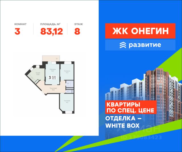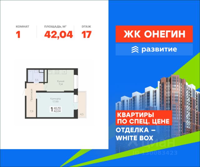 Продается квартира площадью 41.28 кв. м с отделкой White box. Квартира находится на 22 этаже 22 этажного дома, в новом жилом комплексе "Онегин", расположенном по адресу: Московская область, г. Подольск, ул. Садовая 3, корп. 1. "Онегин" - комфорт в деталях. Проект от федерального застройщика "Развитие" расположился в центральной части Подольска - города-спутника столицы. Жилой комплекс состоит из 10 секций переменной высоты (20 - 22 этажа) и включает в себя 510 квартир, собственную инфраструктуру, закрытый благоустроенный двор-парк. Прекрасный баланс города и природы - ЖК "Онегин". Расположение Пешком: - 5 мин. до остановки "Красная горка"; - 10 мин. до склона у реки Пахры; - 30 мин. до центра Подольска; - 30 мин. до МЦД "Силикатная" (или 15 мин. на автобусе). На автомобиле: - 3 мин. до проспекта Ленина с выездом на Симферопольское шоссе; - 10 мин. до МЦД-2 "Подольск"; - 10 минут до горнолыжного комплекса "Красная Горка"; - 30 мин. до ст. метро "Бульвар Дмитрия Донского"; - 35 мин. до МКАД. Благоустройство - большой приватный двор-парк; - всесезонная растительность: взрослые деревья, кустарники, травы, цветочные клумбы; - декоративные камни и многоуровневое освещение для уютной атмосферы; - мощеные тропинки с деревянными скамейками для отдыха; - площадки для малышей с безопасным покрытием; - яркие игровые комплексы для подростков; - спортивный корт для футбола и баскетбола; - многофункциональная воркаут-зона; - уютные места для чтения или работы в тишине. Комфорт и безопасность - монолитно-кирпичные дома с высокой тепло- и шумоизоляцией; - витражные окна, наполняющее квартиры и подъезды светом; - стильные и просторные входные группы; - вход в подъезд без ступенек и перепадов, комфортный доступ для родителей с колясками, пожилых людей и маломобильных жителей; - на первом этаже предусмотрены просторные колясочные; - 2 пассажирских лифта и 1 грузовой в каждом подъезде; - система охраны и круглосуточное видеонаблюдение. Инфраструктура и окружение - подземный паркинг на 262 машино-места, спуститься к автомобилю можно прямо с вашего этажа на лифте - быстро и удобно в любую погоду; - гостевые парковочные места на прилегающей территории; - кладовки расположены на -1 и -2 этажах, хранить сезонные вещи легко и безопасно: доступ - напрямую с вашего этажа на лифте; - школы, частные и муниципальные детские сады, магазины, кафе и все сервисы бытовых услуг в шаговой доступности; - на первых этажах - коммерческие помещения, все необходимое рядом; - 3 фитнес-центра, стадионы "Зенит" и "Подолье", 4 взрослых и детских бассейна; - торгово-развлекательные центры "Капитолий", "Галерея", "Кварц"; - парк культуры и отдыха имени В. Талалихина, музей-заповедник "Подолье", горнолыжный комплекс "Красная Горка", исторические усадьбы "Остафьево" и "Дубровицы" и другие места для семейного отдыха.