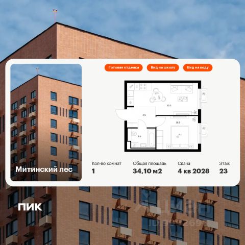 Продаётся 1-комн. квартира площадью 39,7 кв.м на 10 этаже 27 этажного дома (Корпус 14, Секция 5) проекта ПИК Митинский лес. Светлый просторный подъезд на уровне земли, функциональная планировка, большие окна, c отделкой. Жилой квартал "Митинский лес" строится в Митино — районе, известном хорошей экологией. По соседству с домами протянулся большой парк. За 20 минут отсюда можно дойти до метро "Пятницкое шоссе", а за 30 — доехать на автомобиле до центра Москвы. В проекте жилые дома, 2 детских сада на 150 и 235 мест, школа на 1100 мест и подземные паркинги на 525 машиномест. В зелёных дворах-парках будут места для отдыха, современные детские и спортивные площадки. На первых этажах откроются магазины, кафе и другие сервисы — за кофе и свежим хлебом к завтраку можно будет просто спуститься на лифте. Рядом с жилым кварталом — хорошо развитый район. За 5 минут можно доехать до школ, детских садов, торговых центров, кафе и спортзалов. А в трёх минутах ходьбы находится Митинский парк, где приятно гулять и заниматься спортом. Артикул 860594 (Застройщик АО СЗ "ПФК") Купить квартиру в новостройке с отделкой в районе Митино в Москве.