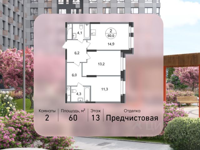 Старт продаж нового корпуса! Продается двухкомнатная квартира с отделкой в 11 фазе города-парка "Первый Московский". Общая площадь квартиры - 58,5 кв. м, этаж 5 из 22. Планируемый срок ввода в эксплуатацию - 1 квартал 2029 года. Тип дома - монолитный. ТОЛЬКО ДО 31 МАРТА выгодные условия на приобретение квартиры в ипотеку или рассрочку. Звоните - и мы подберем оптимальное предложение под ваш запрос! 5 корпус состоит из 2 секций: - 1 секция - без отделки - 2 секция - с отделкой White Box Город-парк "Первый Московский" расположен всего в 7 км по Киевскому шоссе от МКАД на территории Новой Москвы. Из города-парка прямой выезд на Киевское шоссе и трассу Солнцево-Бутово-Варшавское шоссе. ТРАНСПОРТНАЯ ДОСТУПНОСТЬ: - 7 мин. на личном автомобиле или 10 мин. на автобусе до станции метро "Филатов Луг" - 10 мин. на автомобиле или 20 мин. на автобусе до станции метро "Рассказовка" или "Саларьево" ПРЕИМУЩЕСТВА 5 КОРПУСА: - живописные виды на Ульяновский лесопарк - входные группы с безбарьерным входом - просторная колясочная в каждой секции - в каждой секции - 3 лифта: 2 пассажирских, 1 грузовой - количество квартир на этаже: 1 секция - 4 квартиры, 2 секция - 5 квартир - на 1-ом этаже в секции 2 расположено коммерческое помещение - на -1-ом этаже каждой секции запроектированы кладовые помещения - обеспеченность машино-местами: гостевой паркинг 48 м/м, многоуровневые паркинги рядом с домом ВНУТРЕННЯЯ ИНФРАСТРУКТУРА И БЛАГОУСТРОЙСТВО: Дома 11 фазы граничат с Ульяновским лесопарком. Вся территория 11 фазы разделена на 2 типа: - приватное дворовое пространство с детскими игровыми и спортивными площадками. Дворы свободны от машин. - прогулочные маршруты с зонами отдыха. Прогулочный маршрут объединяет дома 11 фазы в единое пространство, за счёт оригинальной геопластики создаётся уникальный разноуровневый ландшафтный узор. РАЗВИТАЯ ИНФРАСТРУКТУРА В ОКРУЖЕНИИ: - общеобразовательная школа 2120 корпус ш3 (всего в проекте 5 школ) - детский сад 2120 корпус д4 (всего в проекте 8 детских садов) - школа искусств - поликлиника - торговый центр Столица - кафе, продуктовые магазины, аптеки, фитнес центры, салоны красоты и пр. - в пешей доступности благоустроенный парк Филатов Луг Купить квартиру в новостройке с отделкой в микрорайоне Первый Московский в городе Московский.