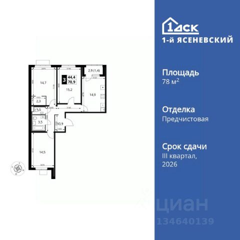 Прямая продажа от застройщика! Жилой Комплекс класса Комфорт Плюс. Продаётся 2-к квартира номер 593 общей площадью 46.9 кв.м. на 17-м этаже 18 этажного здания. Отделка Whitebox. Цена с учётом скидки. Особенности квартиры: - Квартиры рядом с метро - м. Корниловская 9 мин пешком - 63 га лесопарка за окнами - Школа c it-кластером и бассейном. 2 детских сада - Мастер-зона с гардеробной. Просторное место для отдыха и удобного хранения вещей. - Линейная планировка - максимальная функциональность и удобство. - Увеличенное количество окон - дополнительное освещение и свежий воздух. - Раздельный санузел - больше удобства для всех членов семьи. - Евроформат - просторное и удобное жилье с отличной планировкой. - Просторная мягкая зона - комфорт и уют для отдыха всей семьи. - Гардеробная - удобство для хранения и организации вещей. - Лоджия - уютное место для отдыха и тишины. Квартира с предчистовой отделкой (White box). Вам не придется заниматься черновыми и трудоёмкими работы, а чистовую отделку и дизайн - сделайте на свой вкус. Информация о комплексе: В жилом комплексе комфорт-плюс класса "1-го Ясеневского" доступны преимущества двух стилей жизни. Ведь в пешей доступности метро, школа с 25-метровым бассейном и IT-кластером и при этом целых 63 га благоустроенного Троицкого лесопарка под окнами, где так приятно дышать свежим воздухом и слушать пение птиц. Собственная закрытая территория "1-го Ясеневского" представляет собой уютный оазис. Здесь и зеленый освещенный бульвар для прогулок, система велодорожек, маленькая городская площадь, кафе, пекарни и кофе поинты. А еще дворы без машин и многоэтажная парковка. Изюминка территории - фруктовые деревья во дворах и городские сады. "1-й Ясеневский" - всего в 1 км от МКАД, на территории новой Москвы. Жилой комплекс, где есть все необходимое для современного человека. Транспортная доступность: До метро "Корниловская" - 12 минут пешком До метро "Тютчевская" - 25 минут пешком До метро "Теплый стан" - 10 минут на транспорте До метро "Ольховая" - 30 минут на общественном транспорте Личный автотранспорт: Выезд на Калужское шоссе - 500 м МКАД - 1 км Внутренняя инфраструктура: ЖК "1-й Ясеневский" можно назвать идеальным местом для жизни семьи с детьми. Здесь буквально за домом находится Троицкий лесопарк - излюбленное место прогулок молодых родителей. А во внутренних дворах под детские площадки выделены специальные зоны. Они оборудованы всем, что нужно для счастливого детства: современными и максимально безопасными качелями, песочницами и лазалками. Оборудование и игровые сценарии на детских площадках спроектированы вместе с командой детских психологов для правильного развития ребенка и для повышения их интереса. Также рядом с домом два детских садика, один из которых уже построен и школа на 1100 мест. Школу по праву можно назвать образцовым учебным заведением. В ней закладываются основы успешного будущего. Здесь есть класс робототехники, IT-кластер, 25-метровый бассейн и п