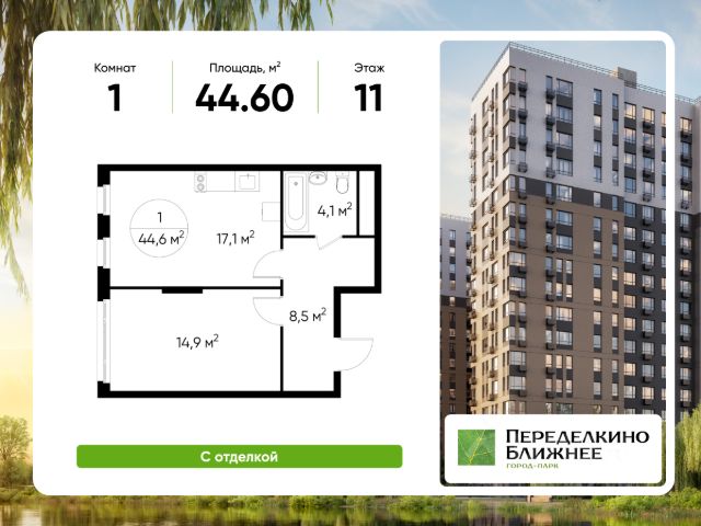 Продается двухкомнатная квартира в городе-парке "Переделкино Ближнее". Общая площадь квартиры - 56 кв. м, этаж 7 из 17. Срок сдачи - 3 квартал 2028 года. Тип дома - монолитный. Корпус расположен в новой 13 фазе строительства и состоит из 6 секций с переменной этажностью 12-17 этажей. Все секции с отделкой White Box с возможностью повышения за дополнительную плату до дизайнерской отделки: Classic или Smart+ Около 13 фазы запланировано строительство многоуровневого паркинга на 300 м/мест. 13 фаза имеет уникальное расположение и находится непосредственно на берегу Федосьинского пруда, который является сердцем города-парка "Переделкино Ближнее". Город-парк "Переделкино Ближнее" расположен в 8 км от МКАД по Боровскому шоссе. ТРАНСПОРТНАЯ ДОСТУПНОСТЬ: - 15 минут пешком до станции МЦД-4 "Мичуринец" - 25 минут пешком до станции метро "Рассказовка" Солнцевской линии - 30 минут до центра Москвы - 2026 г. - открытие трассы Солнцево-Бутово-Варшавское шоссе РАЗВИТАЯ СОЦИАЛЬНАЯ ИНФРАСТРУКТУРА: - 7 детских садов, 3 школы - банки, продуктовые магазины, аптеки, фитнес центры, салоны красоты и пр БЛАГОУСТРОЙСТВО: - дворы без машин - игровые зоны и развивающие детские площадки - зоны для созерцательного и медитативного отдыха - зоны для занятий спортом ОСОБЕННОСТИ АРХИТЕКТУРЫ: - высокие потолки от 3,03 м - безбарьерные входные группы - колясочные в каждой входной группе - кладовые помещения расположены на -1 этаже каждой секции - в каждой секции 2 лифта: 1 пассажирский, 1 грузовой - на фасаде предусмотрены корзины для установки кондиционеров АВТОРСКИЙ ДИЗАЙН: Входные группы выполнены по авторскому дизайну, благодаря панорамному остеклению наполнены естественным светом. В каждой входной группе будет располагаться комфортабельная зона ожидания с возможностью зарядить электронные устройства, почтовые ящики, колясочная, акцентные пуфы и столик.