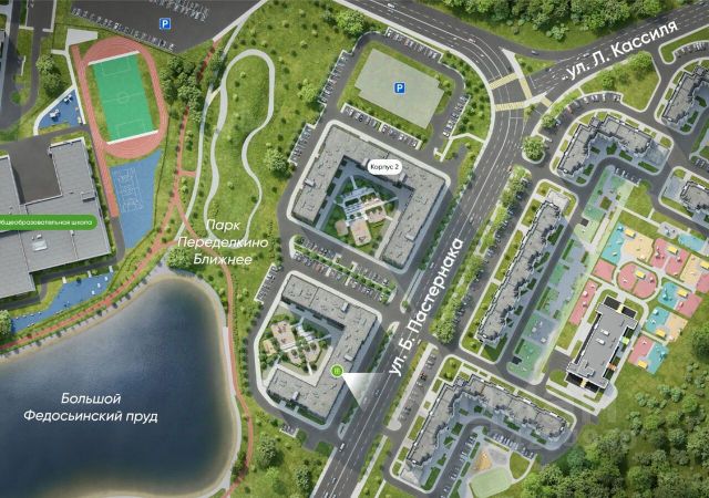 Продается двухкомнатная квартира в городе-парке "Переделкино Ближнее". Общая площадь квартиры - 44,5 кв. м, этаж 6 из 17. Срок сдачи - 3 квартал 2028 года. Тип дома - монолитный. Корпус расположен в 13 фазе строительства и состоит из 6 секций с переменной этажностью 12-17 этажей. Около 13 фазы запланировано строительство многоуровневого паркинга на 300 м/мест. 13 фаза имеет уникальное расположение и находится непосредственно на берегу Федосьинского пруда, который является сердцем города-парка "Переделкино Ближнее". Город-парк "Переделкино Ближнее" расположен в 8 км от МКАД по Боровскому шоссе. ТРАНСПОРТНАЯ ДОСТУПНОСТЬ: - 15 минут пешком до станции МЦД-4 "Мичуринец" - 25 минут пешком до станции метро "Рассказовка" Солнцевской линии - 30 минут до центра Москвы - 2026 г. - открытие трассы Солнцево-Бутово-Варшавское шоссе РАЗВИТАЯ СОЦИАЛЬНАЯ ИНФРАСТРУКТУРА: - 7 детских садов, 3 школы - банки, продуктовые магазины, аптеки, фитнес центры, салоны красоты и пр БЛАГОУСТРОЙСТВО: - дворы без машин - игровые зоны и развивающие детские площадки - зоны для созерцательного и медитативного отдыха - зоны для занятий спортом ОСОБЕННОСТИ АРХИТЕКТУРЫ: - высокие потолки от 3,03 м - безбарьерные входные группы - колясочные в каждой входной группе - кладовые помещения расположены на -1 этаже каждой секции - в каждой секции 2 лифта: 1 пассажирский, 1 грузовой - на фасаде предусмотрены корзины для установки кондиционеров АВТОРСКИЙ ДИЗАЙН: Входные группы выполнены по авторскому дизайну, благодаря панорамному остеклению наполнены естественным светом. В каждой входной группе будет располагаться комфортабельная зона ожидания с возможностью зарядить электронные устройства, почтовые ящики, колясочная, акцентные пуфы и столик.