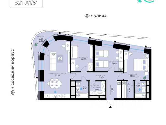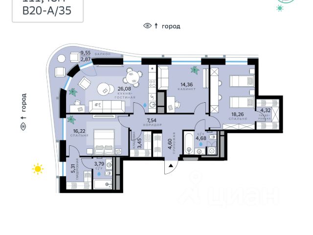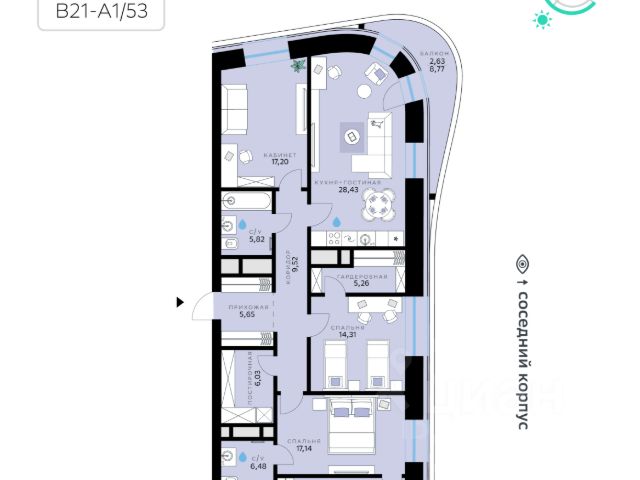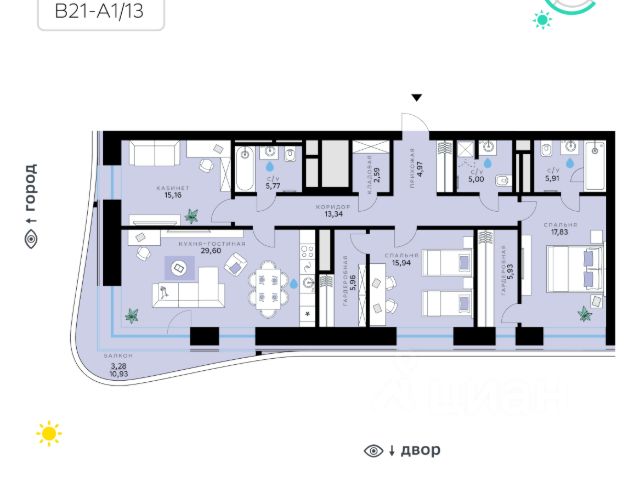 В продаже — двухкомнатная квартира с чистовой отделкой, общей площадью 77,4 кв. м. Квартира расположена на первом этаже девятиэтажного дома класса Оптимум в квартале В17 нового района СберСити, который строит Сбер. Всего в доме — 48 квартир. Квартал В17 — современная интерпретация голландской архитектуры. Каждый корпус имеет индивидуальный облик. В домах класса Оптимум используется лаконичная крупноформатная облицовка стеклофибробетоном и декоративными металлическими панелями. На верхних этажах расположены квартиры с панорамным остеклением и террасами, с которых открываются виды на город, парки и бульвар. В квартирах предустановлена система "умный дом" — комплекс решений, объединяющий квартиру, дом и прилегающую территорию. Жильцы могут регулировать климат и освещение голосом или со смартфона, установлена защита от протечек. Проведены работы по улучшению шумоизоляции, установлены двухкамерные стеклопакеты с алюминиевым профилем и скрытыми створками. Высота потолков — от 2,7 м, в санузлах — тёплый пол. В доме расположены: • уютное лобби, • коворкинг, • общественная терраса, • детская игровая комната, • лапомойка, • колясочная и велосипедная комната на первом этаже, • подземный паркинг. Квартал В17 состоит из шести корпусов переменной этажности (от 1 до 10 этажей) и 491 квартиры. Корпуса объединены общей подземной частью, где расположен паркинг на 309 автомобилей, места для мотоциклов и более 400 кладовых помещений. Во дворах созданы приватные благоустроенные пространства с ландшафтными композициями, детскими и спортивными площадками, зоной для йоги, прогулочными маршрутами и местами отдыха. Рядом расположен детский сад, парк и набережная Москвы-реки. СберСити — это новый жилой и деловой район на западе Москвы, в одном из самых экологически чистых и престижных мест столицы. Это первая в России и крупнейшая в мире инновационная городская среда, созданная по международным стандартам зелёного проектирования. Здесь внедряются решения в области энергоснабжения, вакуумного мусороудаления, тестирования зелёных технологий, а в дальнейшем — системы искусственного интеллекта для управления домами и городской инфраструктурой. Строительство проекта началось в 2021 году, заселение первых корпусов — с лета 2024-го. Общая площадь территории — 461 га, из них более 2,5 млн кв. м жилья и около 833 тыс. кв. м офисных пространств. Будет построено 7 школ, 13 детских садов и 2 поликлиники. В СберСити будут жить 65 тыс. человек и работать 70 тыс. Развитием территории занимается АО "Рублёво-Архангельское", входящее в группу Сбер. СберСити — место, где хочется жить, работать и растить детей. Переезжайте в СберСити!