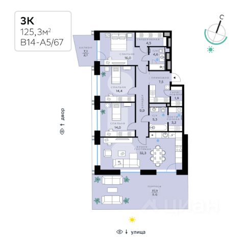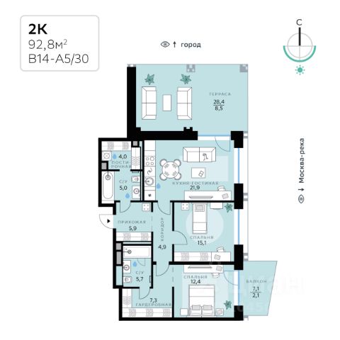 В продаже — трехкомнатная квартира с чистовой отделкой, общей площадью 99 кв. м. Квартира расположена на восьмом этаже десятиэтажного корпуса Балансд в квартале В14 нового района СберСити, который строит Сбер. Архитектуру корпусов квартала разработало итальянское бюро. В облике отражена природная палитра: для фасадов выбраны небесно-голубой и травянистый зелёный оттенки. Декоративные металлические рамы окон и эркеры служат выразительными акцентами. Из окон открываются виды на парк и закаты над рекой. Всего в трёх минутах пешком — набережная, а рядом — главный парк СберСити. Во дворах без машин — много зелени, деревьев, кустарников и многолетних растений, детские площадки и тихие зоны отдыха. Дом возводится по технологии монолитного строительства. Фасады отделываются терракотовыми и алюминиевыми композитными панелями. В квартирах будет установлена система "умный дом", объединяющая управление квартирой, домом и прилегающей территорией. Жильцы смогут регулировать климат и освещение голосом или со смартфона, а также управлять сценариями освещения по заданным параметрам. Повышенная шумоизоляция и двухкамерные стеклопакеты с алюминиевым профилем обеспечивают комфорт и тишину. В санузлах установлен тёплый пол. В доме предусмотрены: уютное лобби, лапомойка, колясочная и велосипедная комната на первом этаже, подземный паркинг. СберСити — это новый жилой и деловой район на западе Москвы, в одном из самых экологически чистых и престижных мест столицы. Это первая в России и крупнейшая в мире инновационная городская среда, созданная по международным стандартам зелёного проектирования. Здесь внедряются решения в области энергоснабжения, вакуумного мусороудаления, тестирования зелёных технологий, а в дальнейшем — системы искусственного интеллекта для управления домами и городской инфраструктурой. Строительство проекта началось в 2021 году, заселение первых корпусов — с лета 2024-го. Общая площадь территории — 461 га, из них более 2,5 млн кв. м жилья и около 833 тыс. кв. м офисных пространств. Будет построено 7 школ, 13 детских садов и 2 поликлиники. В СберСити будут жить 65 тыс. человек и работать 70 тыс. Развитием территории занимается АО "Рублёво-Архангельское", входящее в группу Сбер. СберСити — место, где хочется жить, работать и растить детей. Переезжайте в СберСити!
