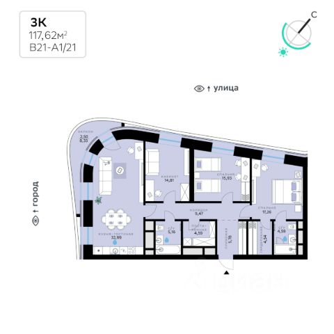 В продаже — однокомнатная квартира с чистовой отделкой, общей площадью 48,06 кв. м. Квартира расположена на седьмом этаже одинадцатиэтажной секции корпуса класса Адвансд в новом районе СберСити, который строит Сбер. Дом находится на второй береговой линии Москвы-реки. Сочетание элегантной архитектуры от ведущего итальянского бюро и передовых технологий на всех уровнях — от квартиры до инфраструктуры района. Отделка фасадов корпуса класса Адвансд выполнена из природного камня, глазурованной плитки и алюминия. В квартирах предустановлена система "умный дом" — комплекс решений, объединяющий квартиру, дом и прилегающую территорию. Жильцы смогут регулировать климат и освещение голосом или со смартфона, а также управлять сценариями освещения по заданным параметрам. Проведены работы по улучшению шумоизоляции, установлены двухкамерные стеклопакеты с алюминиевым профилем и скрытыми створками. В санузлах — тёплый пол. В доме расположены: • уютное лобби, • лапомойка, • общественная терраса, • коворкинг для жителей, • собственная спортивная студия, • колясочная и велосипедная комната на первом этаже, • детская игровая комната, • подземный паркинг. СберСити — это новый жилой и деловой район на западе Москвы, в одном из самых экологически чистых и престижных мест столицы. Это первая в России и крупнейшая в мире инновационная городская среда, созданная по международным стандартам зелёного проектирования. Здесь внедряются решения в области энергоснабжения, вакуумного мусороудаления, тестирования зелёных технологий, а в дальнейшем — системы искусственного интеллекта для управления домами и городской инфраструктурой. Строительство проекта началось в 2021 году, заселение первых корпусов — с лета 2024-го. Общая площадь территории — 461 га, из них более 2,5 млн кв. м жилья и около 833 тыс. кв. м офисных пространств. Будет построено 7 школ, 13 детских садов и 2 поликлиники. В СберСити будут жить 65 тыс. человек и работать 70 тыс. Развитием территории занимается АО "Рублёво-Архангельское", входящее в группу Сбер. СберСити — место, где хочется жить, работать и растить детей. Переезжайте в СберСити!