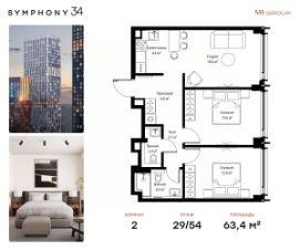 Дом сдан. Ключи в день покупки! В продаже 2-к квартира площадью 58.70 м² с предчистовой отделкой на 5 этаже 43 этажного дома в корпусе Сильвер. ЖК Симфония 34 - концептуально новый жилой комплекс премиум-класса с подземной парковкой, состоит из четырех башен высотой 36 - 54 этажа. Квартиры сдаются с базовой (предчистовой) отделкой MR BASE или дизайнерской чистовой отделкой MR READY. Высота потолков 3 - 6 метров, окна высотой до 2,6 м. Более 100 кладовых в подземной части ЖК и более 500 на этажах. Безопасность - Система контроля входа на территорию комплекса, биометрия - Система автоматического водяного пожаротушения и противопожарного водопровода, система пожарной вентиляции - Доступ на парковку при помощи системы распознавания автомобильных номеров, карточка для контроля доступа резидентов - Система видеонаблюдения - Круглосуточная связь через приложение, телефон, голосовые сообщения с охраной, консьержем, call-центр. Расположение Пешком - 6 минут до метро "Дмитровская" - 15 минут до Тимирязевского парка На машине - 5 минут до Савеловского вокзала и Аэроэкспресса в Шереметьево - 10 минут до Москва-Сити и Садового кольца Благоустройство - 70% территории отведены под зеленые насаждения и ландшафтный дизайн - Приватный Японский сад - Детские площадки с зонированием по возрасту - Clubhouse для резидентов - Wellness & SPA - Зона для пикника, зона с гамаками - Центральное лобби, ресторан, коммерческие помещения - Дополнительный вход/выход на территорию комплекса Окружение - В 10 минутах от Symphony 34 находится дизайн-завод Flacon, где регулярно проходят культурно-образовательные и развлекательные мероприятия - Тимирязевский парк расположен в 850 м. Площадь парка 232 га - Рядом расположен парк "Дубки", площадью 16,5 га. - В 15 минутах расположен Хлебозавод 9. Здесь находятся шоурумы брендов, кафе разных кухонь мира, образовательные проекты и площадки для мероприяти Купить квартиру в новостройке с отделкой в округе САО в Москве.