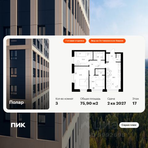Продаётся 2-комн. квартира площадью 52,3 кв.м на 16 этаже 45 этажного дома (Корпус 1.4, Секция 1) проекта ПИК Полар. Светлый просторный подъезд на уровне земли, функциональная планировка, большие окна, c отделкой. "Полар" расположен в двух минутах пешком от Медведковского заказника и вблизи метро "Медведково". Жилой квартал "Полар" строится на севере Москвы в районе Северное Медведково, в 17 минутах пешком от станции метро "Медведково". Все дома в "Поларе" - с индивидуальным дизайном. Над проектом работали сразу два архитектурных бюро - голландцы de Architekten Cie и российская студия Kamen Architects. Благодаря сочетанию двух разных направления в архитектуре, весь квартал будет выглядеть очень оригинально. У голландцев получились дома с чёткими линиями, динамичной архитектурой и панорамными балконами. А в башне Kamen отражается стремительность большого города и созерцательное спокойствие лесопарка. В квартал входит 6 жилых домов разной высоты, собственный детский сад, подземный двухэтажный паркинг, места для спорта, прогулок и отдыха. В просторных лобби - два выхода на уровне земли без порогов и пандусов. На входе установлены IP-домофоны, которыми можно управлять со смартфона. А на первых этажах откроются магазины, кафе и разные полезные сервисы. С верхних этажей "Полара" откроется впечатляющий вид на Медведковский заказник и Москву. В наших дворах мы установим удобные лавочки со встроенными портами USB и Type-C для зарядки мобильных устройств. Не нужно будет возвращаться домой, чтобы зарядить смартфон или ноутбук: можно весь день работать на свежем воздухе или сколько угодно снимать на видео играющего на площадке ребёнка. В шаговой доступности город построит общеобразовательную школу на 350 мест. Район Северное Медведково, где расположен "Полар", входит в городскую программу "Индустриальные кварталы". По ней бывшие промышленные зоны переделывают в комфортные для жизни пространства. Рядом с "Поларом" уже есть спортивный комплекс, новая школа, МФЦ и поликлиники. Артикул 874289 (Застройщик АО "Специализированный застройщик "ТМП 20")
