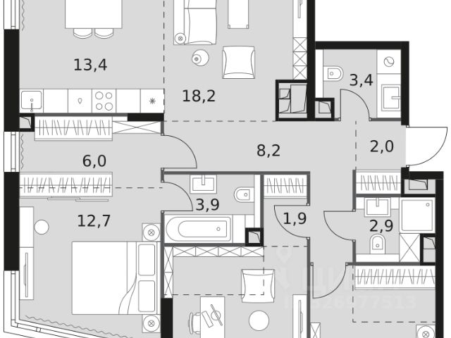 Гибкие программы рассрочки: 0% без переплат и удорожания; первый взнос от 10%. • Уникальная, нетипичная планировка с детально продуманными функциональными зонами • Просторная прихожая с гостевым санузлом, отделяющая входную группу от основной части квартиры • Большая кухня-гостиная с тремя панорамными окнами • Приватная мастер-спальня площадью почти 20 кв. м с двумя панорамными окнами • Просторная ванная комната с окном в мастер-спальне О проекте FIVE TOWERS — первый жилой небоскрёб на Ленинском проспекте и самый высокий дом столицы за пределами делового кластера "Москва-Сити". Премиальный небоскрёб представляет собой ультрасовременное, высокотехнологичное здание, идеальный синтез стилей культовых высоток Москвы и небоскребов Нью-Йорка и поражает воображение уникальными видами, монументальной роскошью и совершенством форм. Величественная панорама, открывающаяся из окон вашей квартиры, завораживает: легендарные сталинские высотки, шпиль главного корпуса МГУ, "Москва-Сити", спорткомплекс "Лужники". Окружение 75-этажный жилой комплекс премиум-класса расположен в историческом Донском районе. Транспортная инфраструктура проекта сделает жизнь резидентов FIVE TOWERS комфортной и продуманной: удобные выезды на ТТК и Садовое кольцо, 10 минут до метро "Ленинский проспект", 11 минут на МЦК до Москва-Сити. Рядом расположены крупные деловые и бизнес-центры, а в шаговой доступности — 500 га парков, образуемых Музеоном, Парком Горького и парком "Воробьевы горы". Инфраструктура Архитектурное бюро Олега Клодта разработало дизайн общественных пространств FIVE TOWERS: гранд-лобби, камерную библиотеку c камином и лифтовую зону. Все необходимые сервисы сосредоточены на первых этажах небоскрёба: кафе, винотека, салон красоты, фитнес и детский клуб. Приватный Sky Club 49 — респектабельный лаундж с открытой террасой и ограниченным доступом на 49 этаже — только для резидентов. Квартиры в FIVE TOWERS Все квартиры в FIVE TOWERS будут сданы с предчистовой отделкой (white box). Это позволит будущим резидентам комплекса сосредоточиться на творческой части ремонта, не связанной с организацией черновых работ. В жилом небоскребе FIVE TOWERS запланировано 596 премиальных квартир и 87 типов планировочных решений, которые можно адаптировать под личные запросы и сценарии проживания. В комплексе премиум-класса представлены не только двух- и трехкомнатные квартиры с угловым остеклением, но и однокомнатные с видом на две стороны и трехкомнатные квартиры с видами на три стороны, что является редким предложением на рынке недвижимости. Купить квартиру в новостройке с отделкой станция Крымская (МЦК).