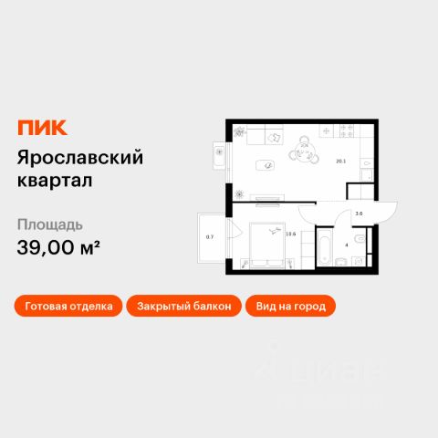 Арт. 127151956 СРОЧНО продаётся 1-комнатная квартира (32,3 м²) в современном ЖК "Ярославский квартал" по ПЕРЕУСТУПКЕ. Выгода для покупателя — цена значительно ниже, чем текущая у застройщика!