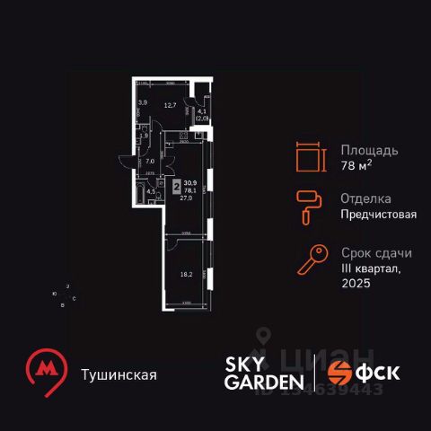Прямая продажа от застройщика! Жилой Комплекс бизнес-класса. Продаётся 3-к квартира номер 638 общей площадью 89.3 кв.м. на 4-м этаже 43 этажного здания. Отделка Whitebox. Цена с учётом скидки. Особенности квартиры: - Мастер-зона с гардеробной. Просторное место для отдыха и удобного хранения вещей. - Просторная спальня, в которой можно разместить большую кровать. - Распашная планировка - отличное сочетание удобства и свободы. - Увеличенная ширина окна/окон - больше света и визуального простора. - Раздельный санузел - больше удобства для всех членов семьи. - Гибкая планировка - создайте пространство по своему вкусу. - Можно оборудовать 2 или более рабочих места - пространство для нескольких человек. - Можно оборудовать рабочее место - комфорт для работы и учёбы. - Просторная мягкая зона - комфорт и уют для отдыха всей семьи. - Гардеробная - удобство для хранения и организации вещей. - Ниша под шкаф - компактное и удобное место для вещей. - Лоджия - уютное место для отдыха и тишины. Квартира с предчистовой отделкой (White box). Вам не придется заниматься черновыми и трудоёмкими работы, а чистовую отделку и дизайн - сделайте на свой вкус. Информация о комплексе: Sky Garden расположен в районе Покровское-Стрешнево. На территории этого района шумит листвой одноименный парк. Зеленый живописный район, реки и каналы поблизости, чистый свежий воздух из подмосковных листов - идеальное место, чтобы ощутить себя частью природы. При этом развитая образовательная, социальная и транспортная инфраструктура оставят вам все преимущества жизни в мегаполисе. Sky Garden - идеальный баланс между природной и городской средой. Транспортная доступность: Всего в 12 минутах пешком до м. Тушинская и 15 минутах до станции Тушинская МЦД. На автомобиле: 2 км до Волоколамского шоссе, 2,5 км до МКАД и 15 км до Садового кольца Внутренняя инфраструктура: К вашим услугам современные игровые площадки: тут ваши дети с удовольствием смогут лазить по бревнам, штурмовать горки и стараться не промокнуть, бегая под струями фонтана. В Sky Garden полно возможностей как для совсем маленьких, так и для взрослых. Предусмотрены активности: мастер классы по йоге на английском газоне, воркаут- площадка, велопарковки. Также в вашем распоряжении на территории комплекса будут: поликлиника, аптека, супермаркет, зона для отдыха, сухой фонтан и площадка для подростков. Пространство для работы, оборудованное кофепоинтом и удобными переговорными. Также к вашим услугам кафе и рестораны в коммерческом кластере. Игровая комната, расположенная в центральном лобби, оборудована двухэтажным комплексом, мягкими татами, книжками и играми, способными увлечь ребятню В каждом подъезде на минус первом этаже оборудованы комнаты для хранения взрослых и детских велосипедов, колясок и самокатов Вкуснейшая горячая выпечка, ресторан с любимыми блюдами, надежная мастерская по ремонту обуви, художественная или спортивная секция для ребенка, фитнес или йога для вас, а также всё, чт