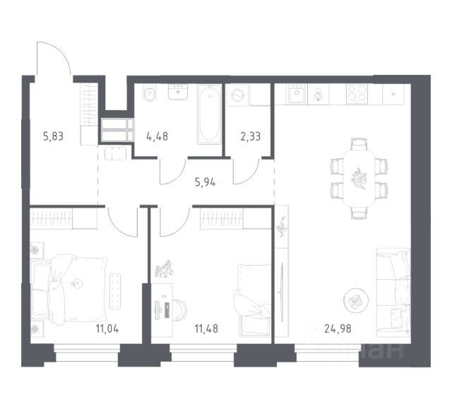 В продаже 2-комнатная квартира в корпусе 2.2 ЖК 'Тропарево Парк'. Квартира располагается на 12 этаже, общая площадь 55.96 м2.