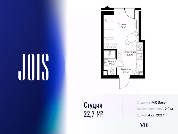 10 минут от Москва-Сити В продаже квартира площадью 22.67 м² с предчистовой отделкой на 14 этаже 55 этажного дома. Квартира расположена в корпусе Anna. JOIS это премиальный жилой комплекс от девелопера MR в районе Хорошёво-Мнёвники. Он включает несколько эффектных небоскрёбов высотой 47-56 этажей, эксклюзивные форматы квартир с панорамным остеклением, подземный двухуровневый паркинг на 239 м/м, собственную приватную инфраструктуру, закрытый ландшафтный парк 2,3 Га с функциональным зонированием и охраняемой территорией. Над проектом работали лучшие команды международных агентств с многолетним опытом: Genpro, S&P, iLight International и другие. Расположение Пешком: - 5 мин. ст. МЦК "Хорошёво"; - 15 мин. ст. м. "Народное ополчение"; - 10 мин. ст. метро "Звенигородская" с 2027 года; - 20 мин. причал "Карамышевский". На автомобиле: - 3 мин. до Звенигородского шоссе; - 5 мин. до ТТК: - 8 мин. до Серебряного бора и Строгинского затона - 10 мин. до ММДЦ "Москва-Сити"; - 40 мин. до аэропорта "Шереметьево"; Благоустройство - собственный ландшафтный парк 2,3 Га; - парк скульптур от Cosmoscow; - консьерж-сервис 24/7; - сервисный лифт и вход; - игровые и спортивные площадки; - коворкинг с библиотекой; - лаунж-зона с камином; - игровые комнаты для детей и клуб для подростков с оборудованием для видеоигр; - спортивная студия для индивидуальных тренировок; - гостиная с мини-кухней; - зоны для выгула собак; - подогрев пешеходных дорожек в зимний период; - автополив зелёных насаждений; - премиальные рестораны, кафе, химчистки, аптеки и супермаркеты. Окружение - 4 парка: Покровское-Стрешнево, Филёвский парк, Серебряный бор и Берёзовая роща; - 15 общеобразовательных заведений, в том числе две школы из самых лучших в Москве: государственная школа "Интеграл" и частная "Хорошкола"; - спортивное сооружение "ВЭБ Арена", домашний стадион ФК ЦСКА; - крупнейший в Европе торгово-развлекательный центр "Авиапарк".