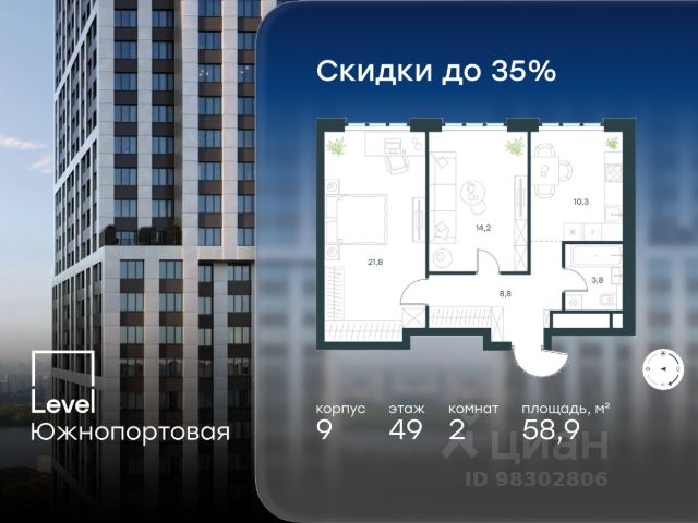 Цена указана с учётом скидки при 100%-й оплате, несубсидированной ипотеке, рассрочке (кроме программы "Рассрочка 0%"). В северной части района Печатники продается 2-комнатная квартира площадью 52.10 кв.м с отделкой white box. Квартира расположена на 10 этаже 49-этажного корпуса 9 в жилом комплексе комфорт-класса Level Южнопортовая (компания Level Group/Левел групп). Отличная транспортная доступность: - 10 мин. пешком до станции метро "Кожуховская"; - 20 мин. пешком до станции МЦК "Дубровка"; - 3 мин. на авто до ТТК; - 13 мин. на авто до Садового кольца; - 15 мин. на авто до Бульварного кольца. Продуманный архитектурный проект: - авторская архитектура от бюро СПИЧ; - уникальные виды на реку, парки и достопримечательности города; - высота потолков в квартирах до 6 м; - окна высотой до 1,87 м с высоким коэффициентом сопротивления теплоотдаче. Расположение: Level Южнопортовая строится в северной части района Печатники - самой приближенной к центру. Здесь будет сформирован новый район "Южный порт", где построят крупный жилой и общественно-деловой центр, аналогичный Москва-Сити. В течение 10-12 лет в этом месте появятся не только жилые дома, но и развитая инфраструктура для жизни и работы. А еще совсем рядом находится набережная Москвы-реки, где планируется построить причалы для речных трамвайчиков и канатную дорогу. Уже сейчас вокруг жилого комплекса работают десятки магазинов и торговых центров, рядом расположено 6 парков, среди которых музей-заповедник "Коломенское". В 10 минутах пешком - 2 муниципальных и 2 частных детских сада, 7 общеобразовательных школ. Внутренняя инфраструктура: Для отдыха жителей в каждом корпусе предусмотрено лобби, оснащенное местами для отдыха, гостевыми санузлами и лапомойками, а в отдельных корпусах - камином. За счёт больших окон и высоких потолков пространства будут наполнены воздухом и светом. На первых этажах жилого комплекса откроются магазины, салоны красоты, фитнес-центр. Для детей строятся собственные детский сад и школа. Благоустройство: Внутренний двор комплекса разработан совместно с бюро GAFA. Основная идея - создать аналог Центрального парка в Нью-Йорке, гармонично сочетая высотные здания и большое изолированное парковое пространство. Вся площадь двора-парка будет огорожена и составит более 2 га, из которых 45% - озеленение. Одним из самых важных ландшафтных элементов здесь станет небольшая речка, наполняющаяся во время дождя. Вокруг неё появится сеть из островов, внутри которых расположатся тематические зоны спорта и отдыха. Технологии и инженерия: - автоматическая передача в управляющую компанию показаний квартирных счётчиков; - телефонная связь, телевидение и интернет на базе оптической мультисервисной сети; - гостевой Wi-Fi в лобби и на территории двора; - единый ключ доступа для входа на территорию комплекса.