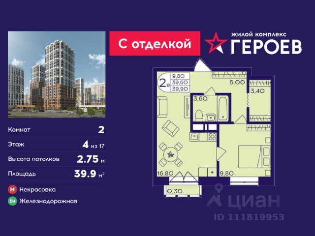 Продаётся 3-комнатная квартира 63.5 кв. м. в жилом комплексе "Героев" в Балашихе, Железнодорожный. Квартира расположена на 2 этаже 407 корпуса. Все квартиры представлены с чистовой отделкой. Вам не нужно тратить время и дополнительные финансы на ремонт или жить в шуме строительных работ - достаточно перевести свои вещи, расставить мебель и всё готово! Жилой квартал "Героев" - это уютный проект для семей с детьми. Всего 40 минут до центра Москвы. В квартале созданы все условия для досуга всех возрастов: игровые и спортивные площадки, места для отдыха и прогулок, магазины, кафе и пункты выдачи. За 15 минут можно дойти от дома до Ольгинского лесопарка - популярного места для прогулок и отдыха на свежем воздухе. Здесь приятно гулять всей семьёй, заниматься спортом или устроить пикник в выходной день. Преимущества: Квартира с готовой отделкой. Пространство полностью подготовлено для жизни: не нужно тратить время и деньги на ремонт или ждать его окончания. После получения ключей достаточно расставить мебель - и можно сразу заезжать и жить. Продуманные и светлые планировки. Просторные кухни-гостиные создают комфортное пространство для отдыха и встреч с близкими. В квартирах предусмотрены удобные гардеробные, благодаря чему легко поддерживать порядок и не перегружать комнаты шкафами. Увеличенное остекление. Большие окна наполняют квартиру естественным светом в течение всего дня, создавая ощущение простора и уюта, а также визуально расширяя пространство и делая интерьер более воздушным. Пешая доступность до станции Железнодорожная (МЦД-4) - дорога займёт не более 30 минут до центра Москвы: станции метро "Курская", "Площадь Ильича" или ТПУ Нижегородская.