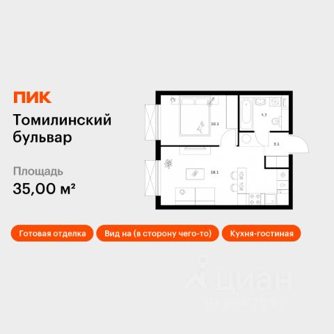 Продаётся 1-комн. квартира площадью 36,1 кв.м на 8 этаже 25 этажного дома (Корпус 5-8, Секция 2) проекта ПИК Томилинский бульвар. Светлый просторный подъезд на уровне земли, функциональная планировка, большие окна, c отделкой. Жилой квартал "Томилинский бульвар" возводится рядом с Кузьминским парком в Котельниках. В 20 минутах пешком метро "Котельники", а на автомобиле 4 минуты до Новорязанского шоссе и 6 минут - до МКАД. В жилом квартале 11 корпусов. Высота домов - 25 этажей. В "Томилинском бульваре" будут три собственных детских сада, поликлиника, паркинги для жителей и гостей квартала, парки с Wi-Fi во дворе каждого дома - с местами для спокойного отдыха, спортивными и детскими площадками. На первых этажах откроются кафе, магазины и другие сервисы, важные для комфортной жизни. В районе, где строится "Томилинский бульвар", всё рядом: школы, детские сады, магазины, торговые центры - например, до "МЕГА Белая Дача" можно доехать за 15 минут. Ещё здесь много мест для прогулок и отдыха на природе, совсем рядом благоустроенный сквер "Патриот". В 13 минутах пешком находится парк "Кузьминки", а в 12 минутах на автомобиле - Люберецкие карьеры, где можно ловить рыбу, загорать и заниматься водными видами спорта в экстрим-парке. Артикул 578040 (Застройщик АО "Яркий мир")