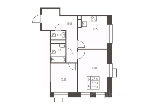 4комнатная квартира площадью 83,53 кв. м. на 12 этаже от застройщика Страна Девелопмент.