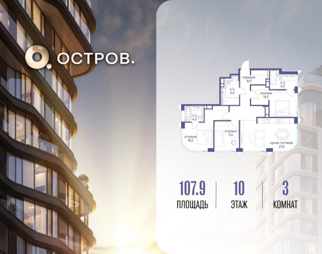 Продаётся трехкомнатная квартира от застройщика: общая площадь 86.50 м², жилая 42.90 м², кухня 29.80 м², 21, жилой квартал "Остров 7", корпус 7 (7 квартал) (секция 1). срок сдачи: 4-кв. 2025. , 2 санузла: 2 совмещенных. В жилой зоне 2 больших окна на одну сторону, хорошая инсоляция. Позвоните сейчас и забронируйте квартиру! Купите квартиру в доме у прибрежного парка, в квартале ОСТРОВ.7. Это семь корпусов премиум- и бизнес-класса в одном из лучших мест ОСТРОВА - между бульваром и парком, поблизости от реки. Стильные корпуса имеют узнаваемый вид благодаря бионической пластике фасадов, приподнятых над землей. Для жителей предусмотрены детский клуб, фитнес-рум, коворкинг, переговорные, лаунжи. На крышах устроены видовые общественные пространства с зонами для отдыха и спорта. Двор расположен на двух уровнях: нижний ландшафтный парк и верхняя городская терраса. ОСТРОВ.7 - часть жилого комплекса на западе Москвы, в 15 минутах езды от центра. Это настоящий заповедник посреди большого города, в окружении реки и 650 га заповедников. Здесь все необходимое находится по соседству: от детского сада до супермаркета, от фитнес-зала до серфинг-центра. На территории созданы все условия для отдыха и общения: клубная инфраструктура в домах и дворы-парки, набережные и променады, маршруты для спортсменов, детей и возрастных жителей. В нескольких минутах ходьбы расположена станция метро "Терехово" БКЛ. На автомобиле - 10 минут до Москва-Сити и 15 минут до Садового кольца.