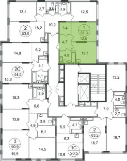- в секциях 2-4, 6-7, 11-12 по 2 лифта: 1 пассажирский, 1 грузовой