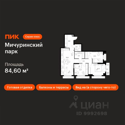 Цена указана с учётом скидки при 100%-й оплате, несубсидированной ипотеке, рассрочке (кроме программы "Рассрочка 0%"). В жилом квартале, расположенном на границе с природным заказником "Долина реки Очаковки", продаётся 2-комнатная квартира площадью 52.00 кв.м с отделкой white box. Квартира расположена на 26 этаже 37-этажного корпуса 5 в жилом комплексе бизнес-класса Левел Мичуринский (компания Level Group/Левел групп). Отличная транспортная доступность: - от 10 мин. пешком до станции метро "Мичуринский проспект" - 15 мин. пешком до станции метро "Аминьевская" - 7 мин. на авто до МКАД - 10 мин. на авто до ТТК - 15 мин. на авто до Москва-Сити Продуманный архитектурный проект: - Выразительная архитектура от известных бюро: корпуса 1-6 - СПИЧ, корпуса 7-13 - Borisov Architects; - Из окон открываются живописные виды на парки, Москва-Сити и МГУ; - Высокие потолки до 6,35 м; - Стильные лобби с окнами в пол и высокими потолками до 4,7 м; - С каждого этажа дома на лифте можно спуститься в подземный отапливаемый паркинг. Расположение: Жилой комплекс Левел Мичуринский строится в одном из самых зелёных районов Москвы - Очаково-Матвеевское. Этот уголок столицы идеален для поддержания здорового образа жизни. В шаговой доступности от проекта находятся заказник "Долина реки Очаковки" - 1 мин. пешком и Очаковский парк - 7 мин. пешком. На велосипеде можно добраться до таких парков, как "Событие", парк Олимпийской деревни, парк 50-летия Октября и парк Школьников. В 15 минутах езды на авто расположено более 30 детских садов (из них 14 в пешей доступности), 32 школы (из них 13 в пешей доступности) и 14 вузов. Также в ближайшем окружении - более 25 медицинских учреждений, 11 спортивных клубов и 22 продуктовых супермаркета. Внутренняя инфраструктура: На территории жилого комплекса строится три детских сада и школа. На первых этажах домов откроется супермаркет, фитнес-центр, ресторан, кафе и другие сервисы. Подземные этажи займут паркинги: трёхуровневые - в этапах 1 и 2, одноуровневый - в этапах 3 и 4. Преимущества проекта: - 4,5 га благоустроенной территории с видовым мостом, уличным кинотеатром, зонами для тихого отдыха, работы, воркаута, площадки для петанка, футбола, настольного тенниса и пляжного волейбола. - Дизайнерские лобби с панорамным видом на двор, мойками для лап животных и комфортными зонами ожидания. - Безопасность жителей: круглосуточное видеонаблюдение всех зон общего пользования (лобби, лифты, паркинги, детские площадки), система контроля доступа, управление видеодомофоном через мобильное приложение, единый ключ доступа на территорию жилого комплекса. - Технологии и комфорт: высокоскоростной Wi-Fi в лобби и на придомовой территории, автоматическая система контроля и учёта ресурсов, абонентская связь с консьержем, распознавание номеров автомобилей при въезде в паркинг и выезде из него.
