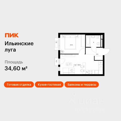Продаётся 1-комн. квартира площадью 34,6 кв.м на 2 этаже 9 этажного дома (Корпус 3.4, Секция 1) проекта ПИК Ильинские луга. Светлый просторный подъезд на уровне земли, функциональная планировка, большие окна, c отделкой. Жилой район "Ильинские луга" находится в 10 километрах от МКАД по Новорижскому шоссе, в 20 минутах на автомобиле от станций метро "Волоколамская", "Тушинская" и "Строгино". В будущем ближе к проекту, в 9 минутах пути на машине, откроется станция "Ильинская" Рублёво-Архангельской линии, которая будет соединять Арбатско-Покровскую линию и Большую кольцевую линию. Сейчас в квартале начались продажи в корпусах 3.2, 3.3, 3.4, 3.5 и 3.6. "Ильинские луга" — масштабный проект, в который входит девять детских садов, четыре школы и поликлиника. Он строится в престижном и экологичном районе среди лесов и памятников природы. За 5 минут от жилого квартала можно доехать до Рублёво-Успенского шоссе, а за 30 минут — до центра Москвы. До крупного торгового центра "РИГАМОЛЛ" всего 5 минут на автомобиле, а до ТЦ "Твой дом" и гипермаркета "Глобус" — 10 минут. В "Ильинских лугах" строятся только девятиэтажные дома — такая архитектура соответствует спокойной жизни за городом. В каждом дворе-парке есть места для отдыха, детские и спортивные площадки. А ещё, здесь уже открыт большой PlayHub "Гравити" — современное игровое пространство с космической тематикой, холмами, зонами для игр и отдыха жителей любого возраста. На первых этажах уже работают магазины, кафе и пекарни. Места для отдыха от "Ильинских лугов" тоже недалеко: 10 минут на машине — и вы в музее-усадьбе "Архангельское". Также рядом находится Лохин остров — памятник природы, где водятся речные черепахи, есть места для кемпинга и возможность сплавиться по реке. Артикул 995397 (Застройщик ООО "СЗ "ГРАДОЛИМП")