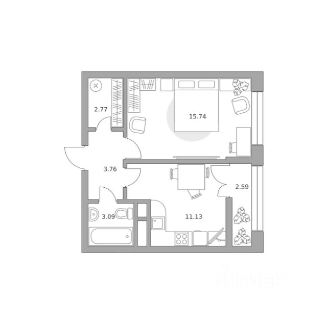 Продаётся студия 610, площадью 23,40 м², на 19 этаже в ЖК "Пехра" корпус 8. Стоимость — от 6431116 руб. Квартира с отделкой, планировка односторонняя, окна во двор.