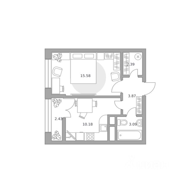 Продаётся студия 1039, площадью 24,41 м², на 4 этаже в ЖК "Пехра" корпус 1. Стоимость — от 7984717 руб. Квартира с отделкой, планировка односторонняя, окна во двор.