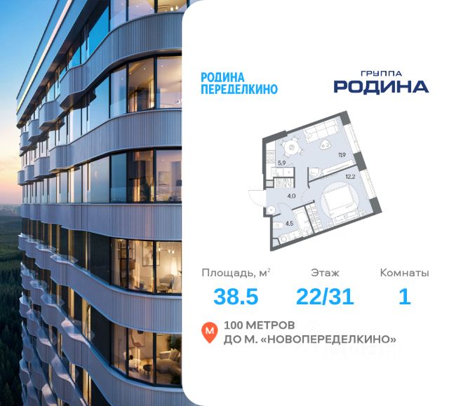 Продается двухкомнатная квартира с отделкой в 9 фазе города-парка "Первый Московский". Общая площадь квартиры - 51,5 кв. м, этаж 11 из 19. Срок сдачи - 2 квартал 2027 года. Тип дома - монолитный. ТОЛЬКО ДО 31 МАРТА выгодные условия на приобретение квартиры в ипотеку или рассрочку. Звоните - и мы подберем оптимальное предложение под ваш запрос! Корпус состоит из 3 секций. Город-парк "Первый Московский" расположен всего в 7 км по Киевскому шоссе от МКАД на территории Новой Москвы. Из города-парка прямой выезд на Киевское шоссе и трассу Солнцево-Бутово-Варшавское шоссе. ТРАНСПОРТНАЯ ДОСТУПНОСТЬ: - 5 мин. на личном автомобиле или 10 мин. на автобусе 189, 147, 193 до станции метро "Филатов Луг" - 5 мин. на личном автомобиле или 12 мин. на автобусе 863 до станции метро "Саларьево" - 6 мин. на личном автомобиле или 15 мин. на автобусе 333 до станции метро "Рассказовка" РАЗВИТАЯ ИНФРАСТРУКТУРА В ОКРУЖЕНИИ: - общеобразовательная школа 2120 (корпуса д1, д7, ш1-ш5) - детский сад 2120 (корпуса д2, д9) - школа искусств - городская больница, детская поликлиника, филиал 5 - подстанция скорой помощи 58 и пожарно-спасательный центр 313 - отдел полиции, отдел ГИБДД - торговые центры "Столица" и "Новомосковский" - стадион, каток, бассейн - кафе, продуктовые магазины, аптеки, фитнес-центры, салоны красоты и пр. БЛАГОУСТРОЙСТВО: - дворы без машин - разнообразные детские площадки и развивающие комплексы - детские площадки разделены по возрастным группам - максимальная близость корпуса к парку "Филатов луг" - озеленение территории с учетом зонирования, островками для отдыха ОСОБЕННОСТИ АРХИТЕКТУРЫ: - безбарьерные входные группы - велопарковка на -1 этаже - колясочные в каждой входной группе - коммерческие помещения на 1 этаже в трех секциях - кладовые помещения расположены на жилых этажах и на -1 этаже - в каждой секции корпуса - 4 лифта: 2 пассажирских, 2 грузовых - видеонаблюдение установленное в холлах первых этажей, у подъездов и на прилегающей территории АВТОРСКИЙ ДИЗАЙН: Входные группы выполнены по авторскому дизайну, оснащены системой "тёплый пол". В каждой входной группе будет располагаться комфортабельная зона ожидания, почтовые ящики с ячейкой для спама, колясочная, акцентные пуфы и столик.