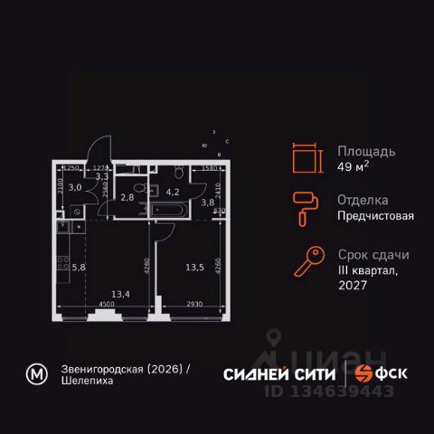 Продаётся 2-к квартира номер 284 общей площадью 46.5 кв.м. на 9-м этаже 27 этажного здания. Чистовая отделка. Цена с учётом скидки.