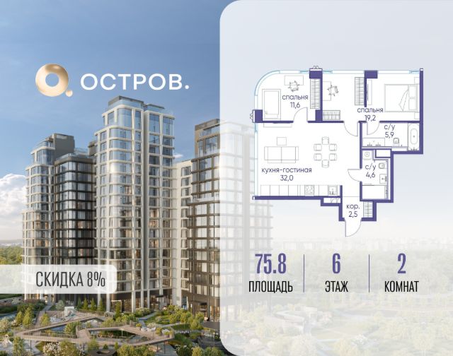 Скидка до 8% действует до 31.03.2026 г. при 100% оплате и не субсидированной ипотеке. Продаётся 2-комн. квартира от застройщика: общая площадь 58.20 м², жилая 29.90 м², кухня 18.20 м², 4-й этаж, жилой квартал "Остров 14", корпус 1 (секция 1). Срок сдачи: 2 квартал 2029 года. 2 совмещенных санузла. Квартира продаётся с чистовой отделкой и мебелью! Идеальный вариант для тех, кто приобретает недвижимость для сдачи в аренду! Инвестиционный продукт для получения постоянного дохода. Остров.14 ДОХОДНЫЙ ДОМ - ЧАСТЬ ПРОЕКТА "ОСТРОВ", В 10 МИНУТАХ ОТ МОСКВА-СИТИ, В 15 МИНУТАХ ЕЗДЫ ОТ САДОВОГО КОЛЬЦА. Квартиры с отделкой и мебелью, и с управлением "под ключ" Постоянный доход для инвесторов, отельный сервис для арендаторов Востребованные для аренды планировки: студии, 1- и 2-комнатные квартиры 28-64 м2 Полная комплектация квартир: отделка, мебель, бытовая техника, кондиционеры Постоянный поток арендаторов - 10 минут от Москва-Сити, 5 минут от метро "Мневники", самодостаточная инфраструктура в квартале и собственная клубная инфраструктура в доме, спортивный, рекреационный и деловой кластеры на территории ОСТРОВА