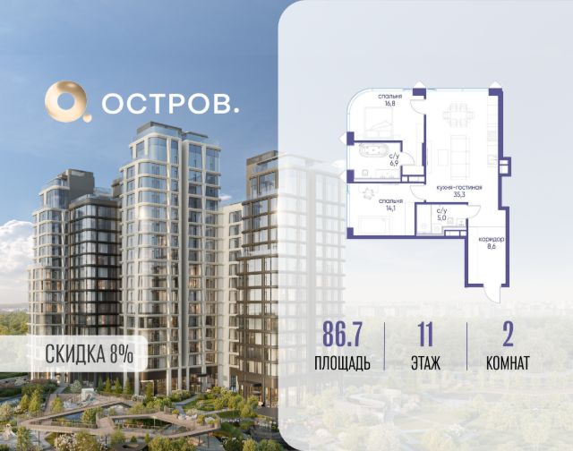 Скидка до 8% действует до 31.03.2026 г. при 100% оплате и не субсидированной ипотеке. Продаётся многокомнатная квартира от застройщика: общая площадь 318.10 м², жилая 99.80 м², кухня 75.30 м², 19, жилой квартал "Остров 7", корпус 4 (7 квартал) (секция 1). срок сдачи: 4-кв. 2025. , 4 санузла: 1 раздельный и 3 совмещенных. В жилой зоне 2 больших окна на одну сторону, хорошая инсоляция. Позвоните сейчас и забронируйте квартиру! Купите квартиру в доме у прибрежного парка, в квартале ОСТРОВ.7. Это семь корпусов премиум- и бизнес-класса в одном из лучших мест ОСТРОВА - между бульваром и парком, поблизости от реки. Стильные корпуса имеют узнаваемый вид благодаря бионической пластике фасадов, приподнятых над землей. Для жителей предусмотрены детский клуб, фитнес-рум, коворкинг, переговорные, лаунжи. На крышах устроены видовые общественные пространства с зонами для отдыха и спорта. Двор расположен на двух уровнях: нижний ландшафтный парк и верхняя городская терраса. ОСТРОВ.7 - часть жилого комплекса на западе Москвы, в 15 минутах езды от центра. Это настоящий заповедник посреди большого города, в окружении реки и 650 га заповедников. Здесь все необходимое находится по соседству: от детского сада до супермаркета, от фитнес-зала до серфинг-центра. На территории созданы все условия для отдыха и общения: клубная инфраструктура в домах и дворы-парки, набережные и променады, маршруты для спортсменов, детей и возрастных жителей. В нескольких минутах ходьбы расположена станция метро "Терехово" БКЛ. На автомобиле - 10 минут до Москва-Сити и 15 минут до Садового кольца.