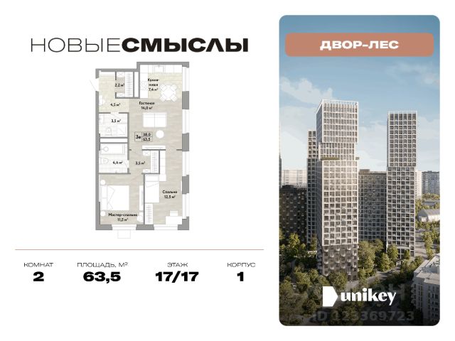 В жилом комплексе, расположенном по соседству с ландшафтным парком "Южное Бутово", продается 1-комнатная квартира площадью 37.70 кв. м. с отделкой. Квартира расположена на 4 этаже 2 корпуса в жилом квартале комфорт-класса "Новые Смыслы" (ГК Unikey/Юникей). Доступная и удобная локация: - 10 минут ходьбы до станции метро "Потапово". - 25 минут ходьбы до станции метро "Бунинская аллея". - 15 минут на авто до Калужского шоссе. - 20 минут на авто до МКАД. - 30 минут на машине до аэропортов "Внуково" и "Остафьево". Продуманный архитектурный проект: - Разноуровневые секции с эстетичные башнями и контрастными цветовыми сочетаниями, напоминающими башни в Сити. - Сказочные виды из окон на современный район столицы. - Авторские планировки с потолками в 3 метра, просторными кухнями-гостиными и мастер-спальнями. - Комфортные бесплатные общественные пространства. - Подземный паркинг с прямым доступом на лифте. - Настоящий лес с живописными пейзажами и прудом прямо во дворе. Расположение Комплекс "Новые Смыслы" расположится в благоприятном районе Новой Москвы - Коммунарка. Зеленое окружение, богатая инфраструктура развивающегося района - все это сформирует особое пространство для комфортной жизни, наполненной смыслом. 10 минут на велосипеде - и вы в ландшафтном парке "Южное Бутово" или сквере у Потаповских прудов. Чуть дальше расположен Бутовский лесопарк. В окружении "Новых Смыслов" вы найдете все необходимые социальные объекты. В двух шагах от дома находится 5 школ, более десятка детских садов, секции для занятий малышей и подростков, частные клиники, супермаркеты, рестораны, студии красоты и фитнес-центры. За 12 минут на авто вы доберетесь до ледовой арены, комплекса "Спорт Станция" и спа-центра "Termoland". Внутренняя инфраструктура Для жителей "Новых Смыслов" будут созданы бесплатные общественные пространства: - Деловая гостиная с эстетичным коворкингом и переговорными. - Гостиная для души и тела, включающая фитнес-зону с тренажерами и пространства для стретчинга, йоги и медитаций. - Гостиная детства, где дети будут играть и развиваться под присмотром тьютора. - Кино-гостиная - кинотеатр на крыше одного из домов, предлагающий разнообразную программу. - Прачечная, работающая только для жильцов. Вместе с корпусами комплекса на территории запланировано строительство детского сада. На первых этажах корпусов откроются кофейни, пекарни, сервисы быта и пункты доставки. Благоустройство Чтобы отдохнуть от суеты города, достаточно выйти во двор: здесь раскинулся настоящий лес с живописными пейзажами. В тени деревьев жителей ждут пруд с мостиком и беседкой на берегу, тихие прогулочные аллеи, спортивная площадка и зоны для занятий йогой и бадминтоном на свежем воздухе. Юных жителей порадуют современные детские площадки, жукарий и специальное пространство для подвижных игр. Безопасность на территории гарантирована: двор огорожен от машин и оснащен камерами видеонаблюдения.