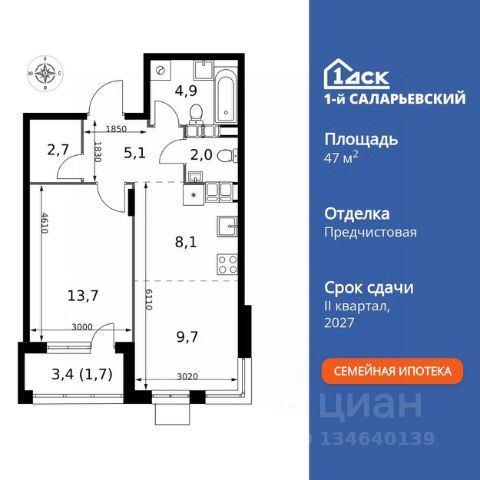 Прямая продажа от застройщика! Жилой Комплекс класса Комфорт+. Продаётся 2-к квартира номер 110 общей площадью 54.5 кв.м. на 11-м этаже 25 этажного здания. Предчистовая отделка. Цена с учётом скидки. Особенности квартиры: - Организуем показ в удобное для вас время! - Просторная спальня, в которой можно разместить большую кровать. - Угловая планировка - больше пространства для ваших идей. - Увеличенное количество окон - дополнительное освещение и свежий воздух. - Гостевой санузел - комфорт и удобство для ваших гостей. - Можно оборудовать 2 или более рабочих места - пространство для нескольких человек. - Линейная кухня - функциональность и практичность в одном решении. - Гардеробная - удобство для хранения и организации вещей. - Ниша под шкаф - компактное и удобное место для вещей. - Лоджия - уютное место для отдыха и тишины. - Панорамное остекление лоджии - открывает вид на окружающий мир. Квартира с предчистовой отделкой. Вам не придется заниматься черновыми и трудоёмкими работы, а чистовую отделку и дизайн - сделайте на свой вкус. Информация о комплексе: Микрорайон спроектирован по концепции "без машин": безопасные пешеходные зоны, дворы без автомобилей. Для гостей и перевозки грузов - сквозные подъезды с внешней стороны и паркинги на 7 этажах. Безбарьерная среда для колясок и маломобильных групп, повсеместное видеонаблюдение. Удобство и порядок без ущерба для комфорта жителей. Транспортная доступность: "1-й Саларьевский" в Новой Москве: 2 км от МКАД, 5 минут пешком до метро "Саларьево". Удобный выезд на Киевское шоссе для автомобилистов. Рядом ТЦ "Саларис" с покупками и развлечениями для всей семьи. Личный автотранспорт: До Киевского шоссе - 0,2 км До МКАД - 2,4 км До Калужского шоссе - 5 км До Ленинского проспекта - 3,2 км Общественный транспорт: До станции метро "Саларьево" - 7 мин пешком До остановок наземного транспорта - 5-10 мин пешком До Ленинского проспекта на автобусе - 10 мин Внутренняя инфраструктура: Во дворе царит беззаботная атмосфера: магазины первой необходимости, уютные кафе и кофе-пойнты. На бульваре - уличные выставки, шахматные столы и световые качели. Свой детский сад на 225 мест и муниципальная школа на 450 учеников плавно сопровождают взросление детей. Рядом - развитая инфраструктура: фитнес-центры, парки, ТРЦ для шопинга, салоны красоты и рестораны. Всё в шаговой доступности или в паре минут на велосипеде. Идеальная среда для жизни - каждый элемент продуман для комфорта и радости. Квартира с предчистовой отделкой - ваш дизайн без черновых работ Купить квартиру с отделкой в округе НАО (Новомосковский) в Москве.