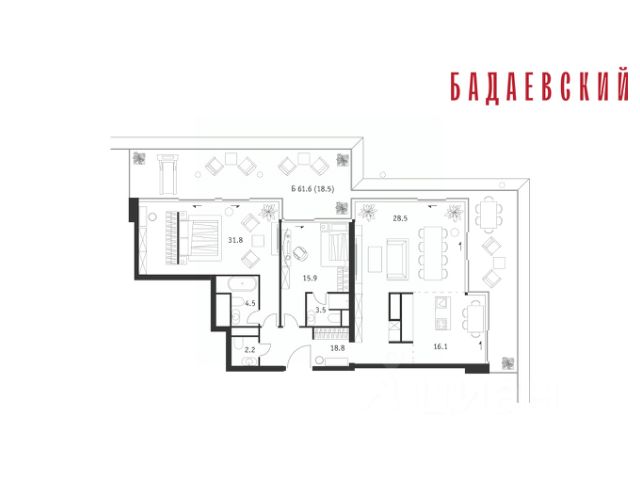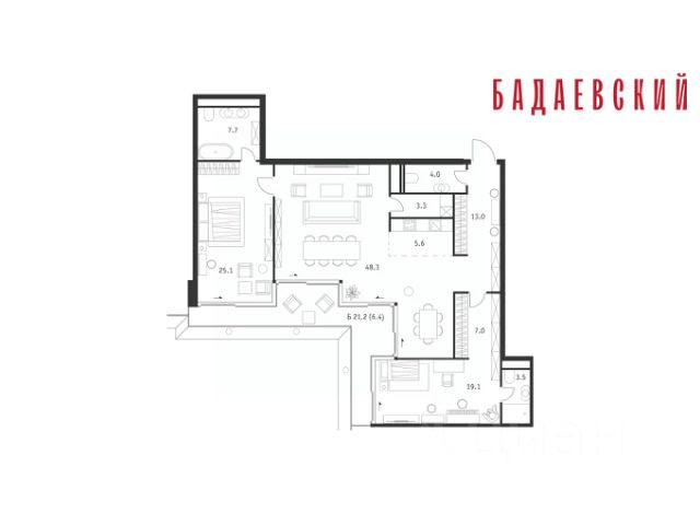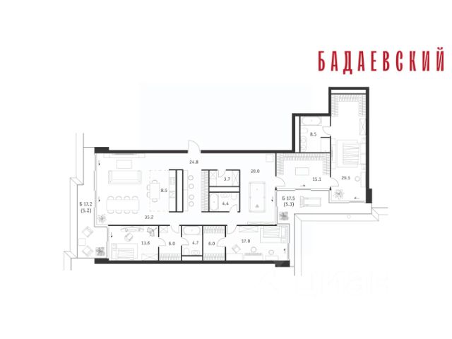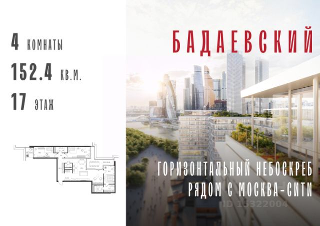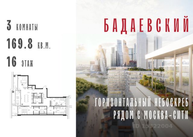 Продаётся 5-комнатная квартира общей площадью 221.00 м² на 10 этаже Жилого Комплекса Бадаевский. О нем говорили. Его ждали. Жилой комплекс "Бадаевский" на Кутузовском проспекте — это место для жизни, которое займет место в истории. Комплекс стал первым в истории московским проектом, победившим в категории Residential на World Architecture Festival. Девелопер Capital Group. В "Бадаевском" исторические здания завода и футуристические "парящие" дома создают единый комплекс, который станет новой достопримечательностью и символом Москвы. Панорамное остекление, террасы и веранды дарят неординарные и захватывающие виды. Благодаря расположению домов и панорамному остеклению, жилые пространства в "Бадаевском" будут наполнены светом. А виды из окон домов-"лент" на Москву-реку, пивоваренный завод, небоскребы "Москва-Сити" и Белый дом дополнены принципиально новым ощущением высоты. На территории Бадаевского завода появится масштабный ландшафтный парк с концепцией "русский лес". Впервые в истории района Дорогомилово у жителей появится прямая связь набережной Тараса Шевченко с Кутузовским проспектом. Близость Москвы-реки добавляет к преимуществам "Бадаевского" природную энергетику и приятные прогулки на свежем воздухе. Подземная парковка позволит сделать территорию завода полностью пешеходной, а сам комплекс представит новый подход к организации открытого и уединенного пространства в центре Москвы. Расположение в начале Кутузовского проспекта делает проект не только престижным, но и удобным: до Третьего транспортного и Садового кольца можно доехать за 5 минут, а Кремль и основные исторические достопримечательности расположены в 15 минутах на автомобиле. Напротив "Бадаевского" находится офисный кластер "Москва-Сити". Для жителей комплекс будет создано не только новое масштабное благоустройство, но и вся необходимая инфраструктура. В исторических корпусах появятся магазины, бутики, кафе и рестораны, коворкинг и крафтовая пивоварня, а в зданиях элеваторов — русская баня. Кроме того, запланирован фермерский рынок и досуговый кластер с музыкальной студией, центром детского творчества и фитнес-центром с бассейном. Продам квартиру от застройщика Capital Group в Москве.