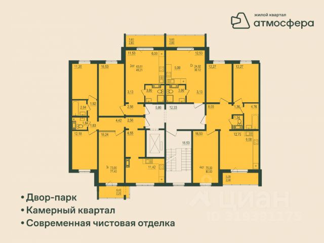 Жилой квартал "Атмосфера" — замечательное место для проживания! Малая и переменная этажность домов делает комплекс привлекательным для людей, которые стремятся к спокойствию загородной жизни и единению с природой. Просторный закрытый двор-парк с зелеными насаждениями и пешеходными дорожками создает уютную атмосферу и располагает к общению между жителями. Благодаря приватному двору без автомобилей, дети и взрослые чувствуют себя безопасно и свободно.